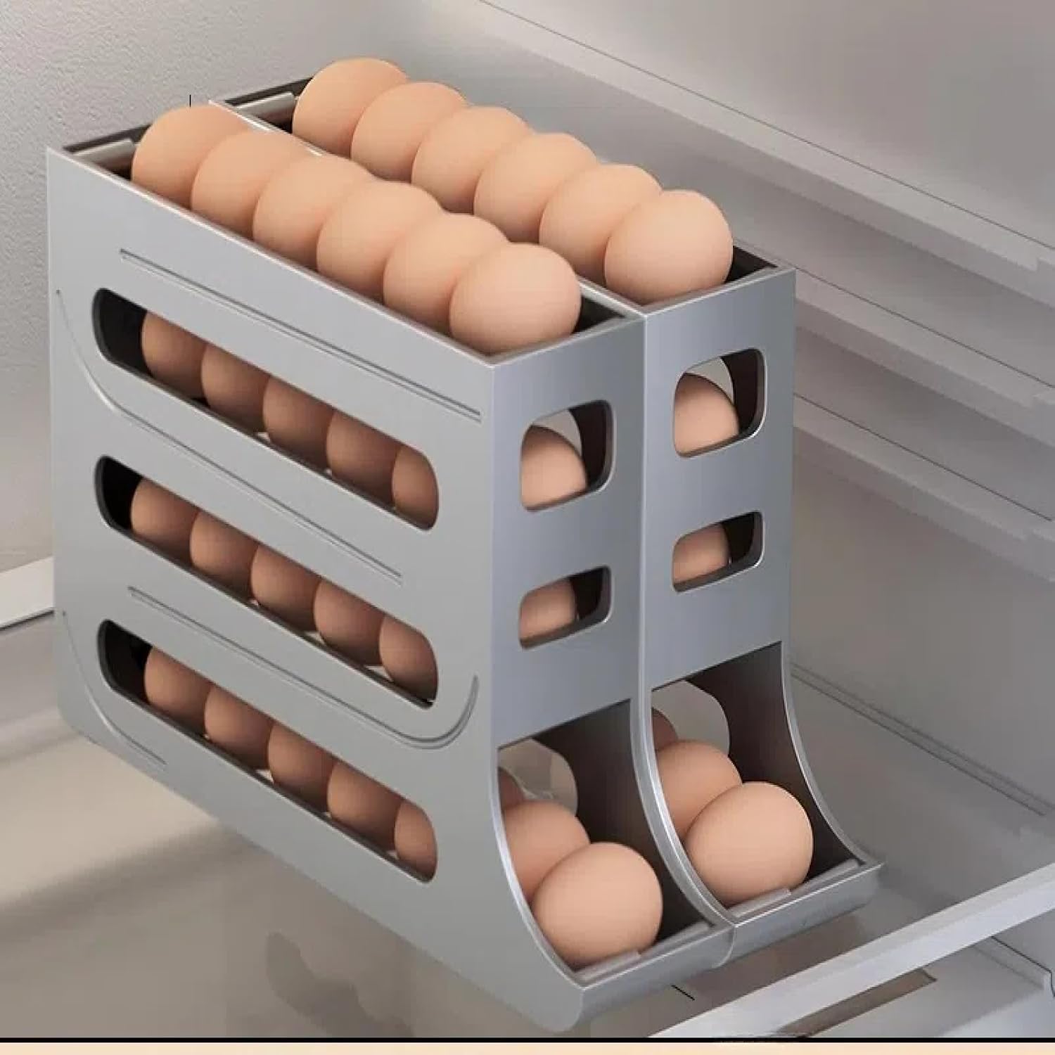 Egg Storage Box Refrigerator Side Door Storage Box Egg Rolling Food Grade Egg Holder Automatic Egg Rolling Egg Box Fresh-keeping Box Single Pack] About 30 Eggs Size: 35.9*7*19.9cm Color: Cream White / Pure White / Light Gray