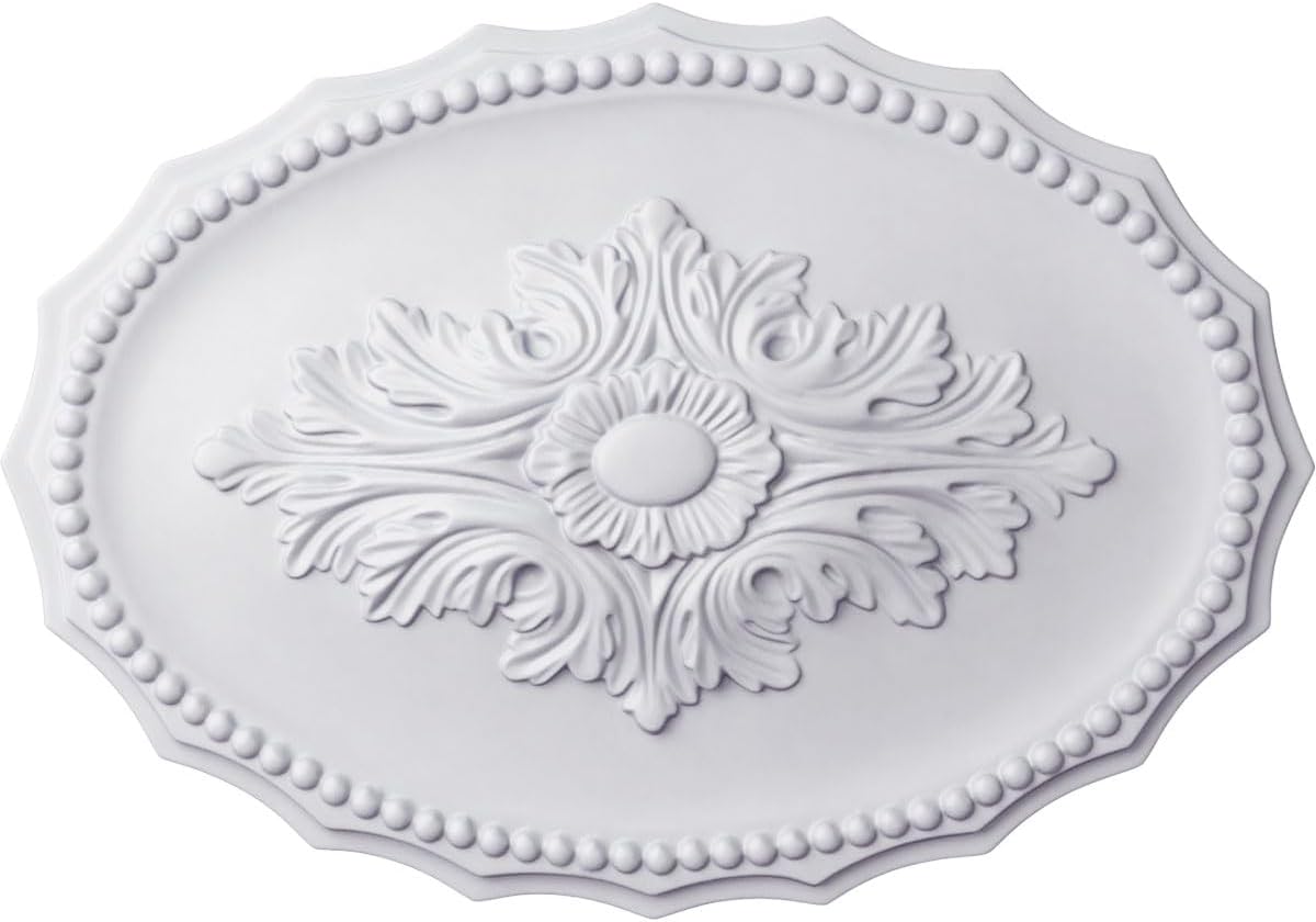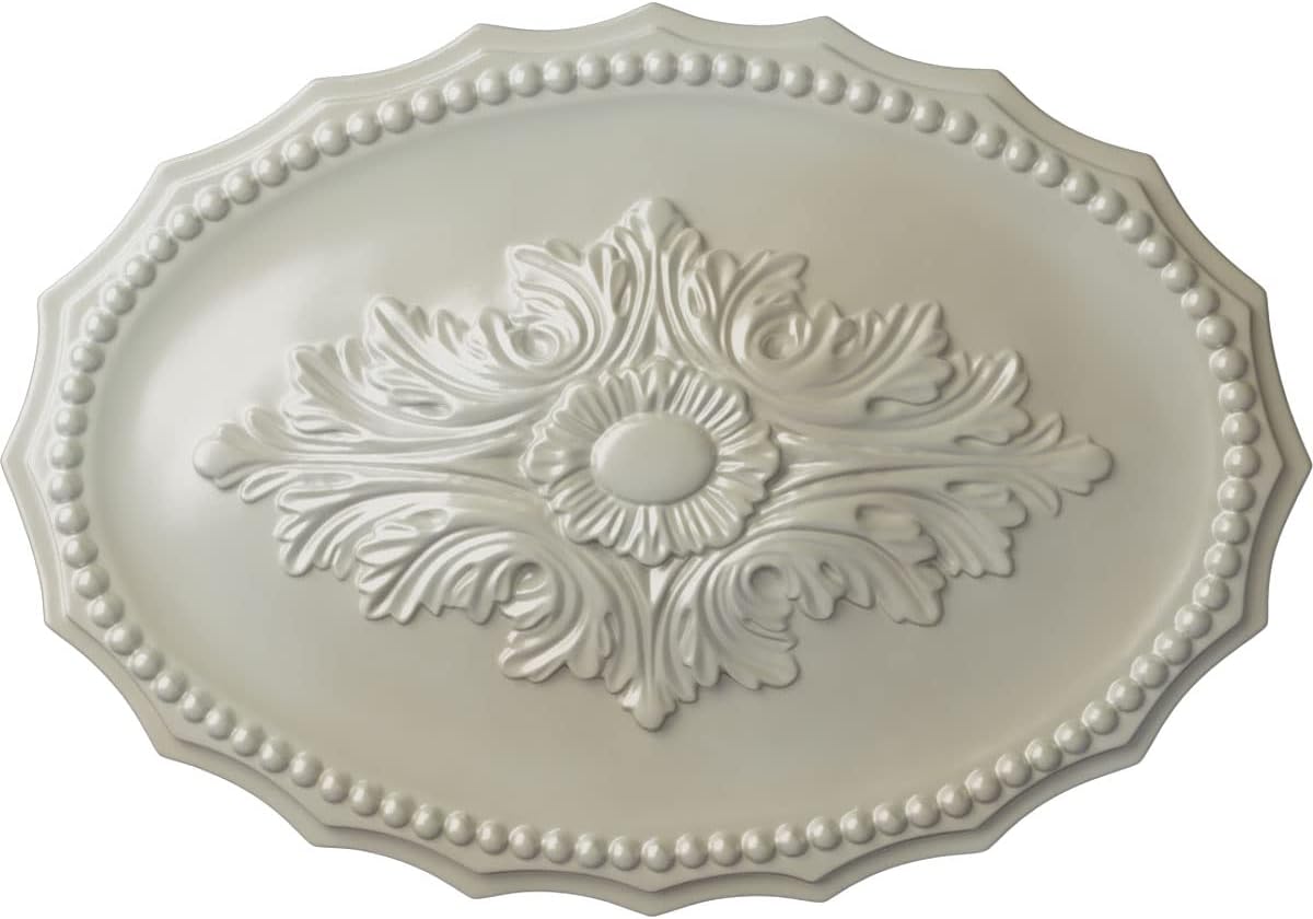 Our ceiling medallion collections are modeled after original historical patterns and designs. Our artisans then hand carve an original piece. Being hand carved each piece is richly detailed with deep relief, sharp lines, and a truly unique touch. That master piece is then used to create a mould master. Once the mould master is created we use our high density Urethane foam to form each medallion. The finished look is a beautifully detailed, light weight, solid construction, focal piece. The resemblance to original plaster medallions is achieved only by using our high density Urethane and not vacuum formed, "plastic" type medallions. - medallions can be cut using standard woodworking tools to add a hole for electrical or a ceiling Fan canopy. - medallions are light weight for easy installation. - they are fully primed and ready for your paint. If you have any questions feel free to ask. These are in stock and available for immediate shipment.