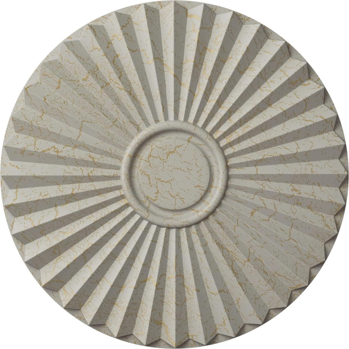Our ceiling medallion collections are modeled after original historical patterns and designs. Our artisans then hand carve an original piece. Being hand carved each piece is richly detailed with deep relief, sharp lines, and a truly unique touch. That master piece is then used to create a mould master. Once the mould master is created we use our high density Urethane foam to form each medallion. The finished look is a beautifully detailed, light weight, solid construction, focal piece. The resemblance to original plaster medallions is achieved only by using our high density Urethane and not vacuum formed, "plastic" type medallions. - medallions can be cut using standard woodworking tools to add a hole for electrical or a ceiling Fan canopy. - medallions are light weight for easy installation. - they are fully primed and ready for your paint. If you have any questions feel free to ask. These are in stock and available for immediate shipment.
