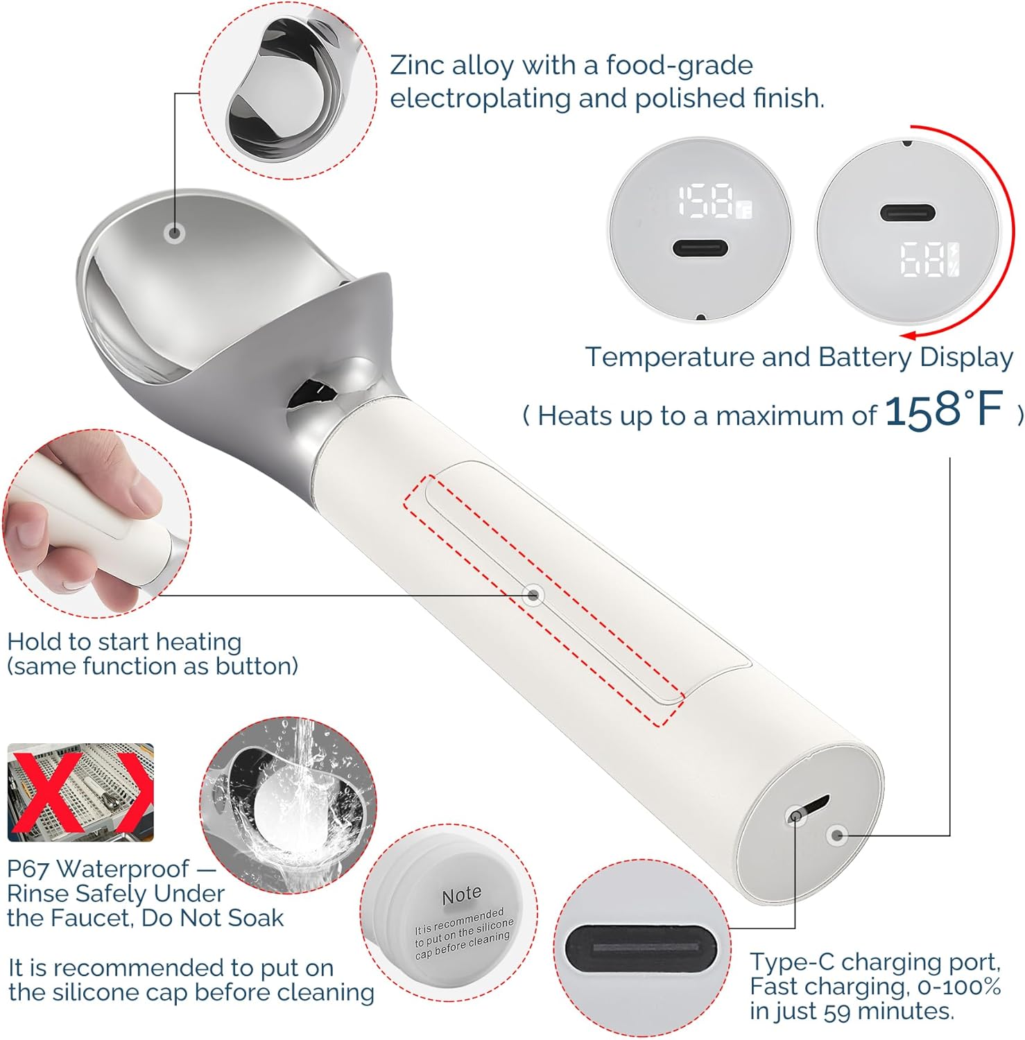 This bundle includes two electric heated ice cream scoops designed to make serving hard, frozen ice cream easier and more comfortable. Each scoop features built-in heating technology with an LED temperature display to gently warm the scooping surface, helping reduce effort when dealing with dense frozen desserts. The bundle combines two rechargeable models with different battery capacities, offering flexibility for daily home use, family sharing, or gifting. Both scoops are USB rechargeable, cordless, and designed for convenient handling. Ideal for households, parties, or anyone who enjoys ice cream without struggling with traditional scoops.