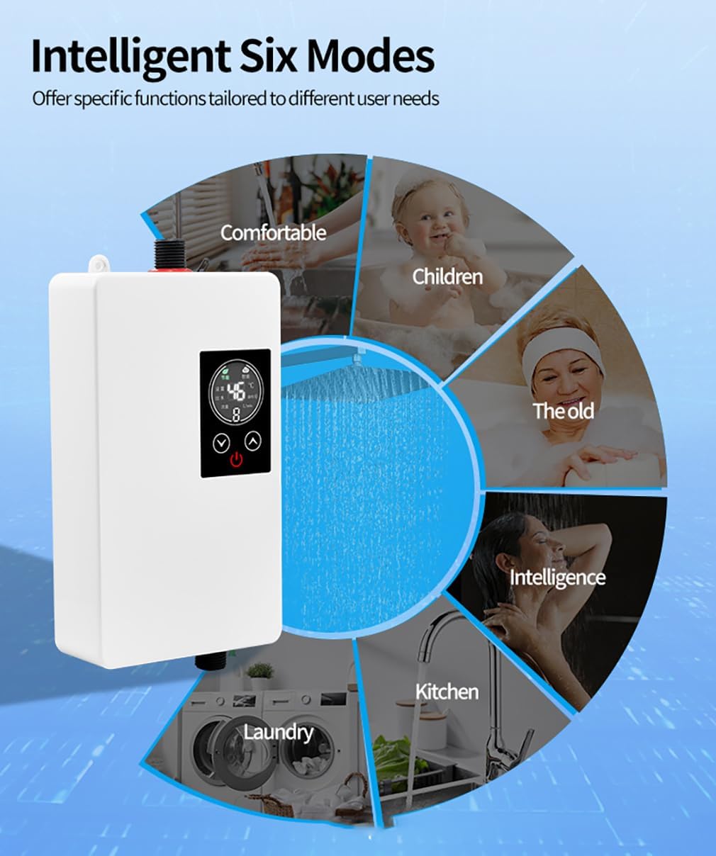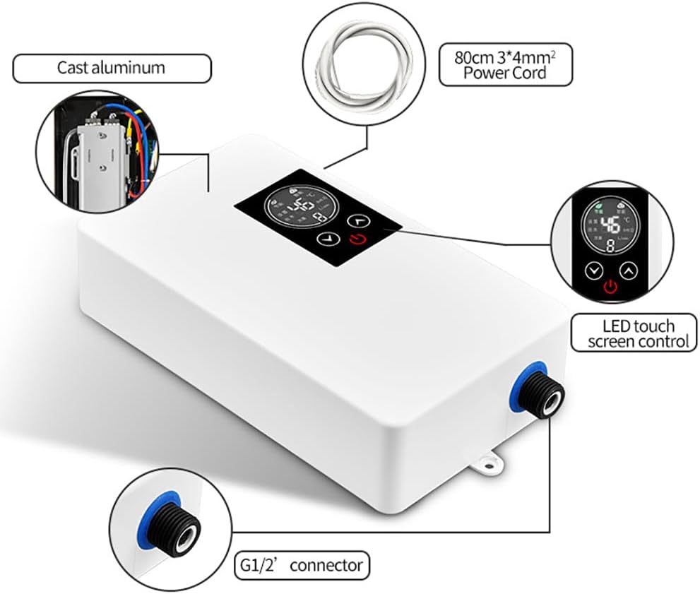 Upgrade your home with our high-performance Electric Tankless Water Heater. This instant hot water heater provides a continuous supply of on-demand hot water, eliminating the limitations of a traditional storage tank. Designed for point of use applications, this compact water heater is ideal for installation under the sink in your kitchen or bathroom, in your RV, camper, boat, apartment, or tiny home. Its space-saving design is a perfect solution for areas where room is limited. Why Choose Our Tankless Water Heater? · Energy Efficient: Heats water only when needed, reducing energy consumption and saving you money. · Endless Hot Water: Never run out of hot water during a shower again. · Precise Temperature Control: Enjoy a stable and comfortable water temperature. · Safe & Reliable: Built-in multiple safety features including overheating protection and automatic shut-off. · Easy to Maintain: Simplified design requires minimal maintenance. Invest in an efficient and reliable hot water solution today!