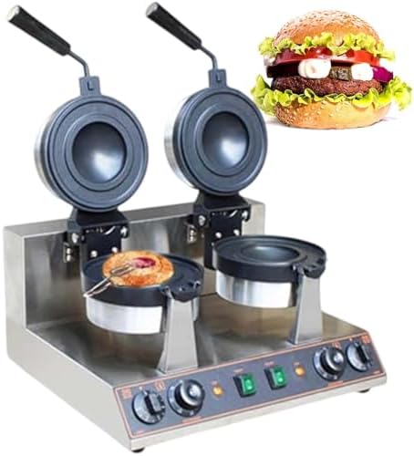 This innovative appliance seamlessly blends functionality with safety, featuring four reinforced feet that provide exceptional stability during use. Powered by dual 1300 W cast-aluminum heating plates, this machine ensures rapid and even heat distribution, allowing you to achieve perfectly crispy exteriors and tender interiors in just minutes. With precise temperature control ranging from 122°F to 572°F and a 0-5 minute timer that emits an audible alert when your waffle burger is ready, you can customize your cooking results to perfection. The 3-layer Teflon-coated non-stick plates make cleanup a breeze, preventing food residue buildup and ensuring your machine stays in top condition. The 180° rotatable heads apply uniform pressure, delivering consistent texture and shape for every burger. Plus, the removable crumb tray keeps your workspace tidy by collecting any spills. Whether you're operating a bustling food truck, a cozy café, or simply looking to impress guests in your home kitchen, this Ice Cream Burger Machine delivers restaurant-quality results with unmatched efficiency. Transform your cooking experience and delight your customers with this essential kitchen tool. **Product Parameters:** - Name: Commercial Ice Cream Burger Machine - Materials: Stainless Steel - Molds Coating: Non-Stick Coating - Molds Materials: Cast Aluminum - Model: Single Heads / Double Heads - Features: Rotatable Heads - Temperature Range: 50-300℃ / 122-572℉ - Time Setting: 0-5 Min **Single Heads:** - Power: 1300 W - Size: 40 x 33 x 30 cm - Weight: 8 kg **Double Heads:** - Power: 1300 W + 1300 W - Size: 59 x 54 x 37 cm - Weight: 19 kg **Package List:** - 1 x Burger Waffle Maker