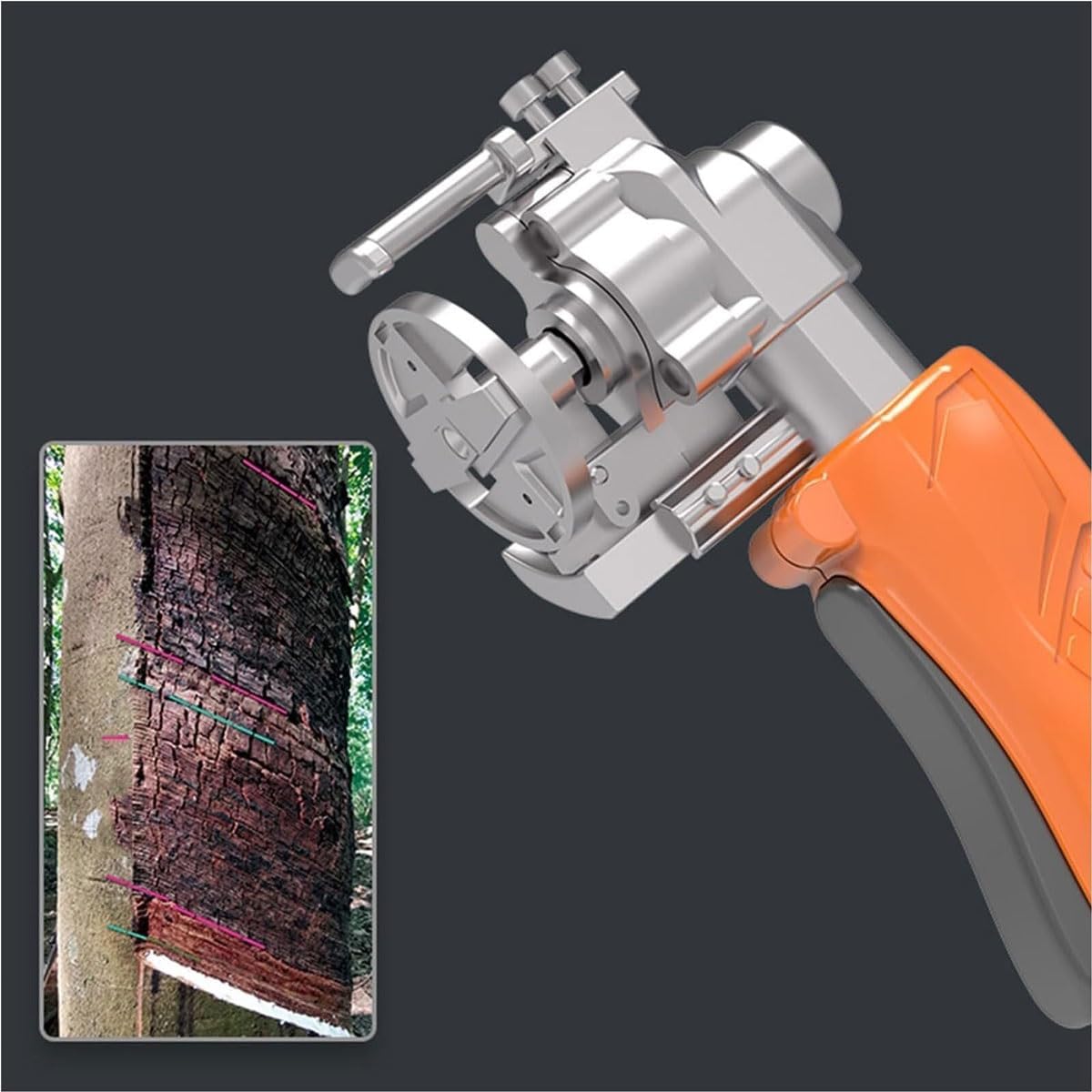 Electric Maple Syrup Tapping Machine, Rechargeable Tree Bark Scraper, 3-Speed Adjustable, Fast Rubber Tree Tapping Kit for Efficient Sap CollectionFeatures:1. Simple operation, no complex skills required2. Seamless cutting/moving/retracting process3. Specail Y-axis rotary cutting technology, zero damage to latex tubes, extending rubber production life by 5-8 years4. Lightweight and portable, comfortable for extended hand useSpecifications:Name:Electric rubber tapping toolMotor type: brushless motorHost length: 230mmRotating knife holder diameter: 30.2mmProduct voltage: 18VNo-load speed: 1000rpm/2nd gear 1300rpm/3rd gear 1450rpmCutting thickness: 0-2.0mmBattery type: lithium batteryNone weight: about 0.57kgPackage Included:1 x Gum Tapping Knife1 x Plastic Box1 x Charger1 x Tool1 x Waist Bag1 x Lithium BatteryNotes:1. Due to manual measurement, 2-3cm deviation is allowed.2. Different monitors have different calls, and the product color is subject to the actual product
