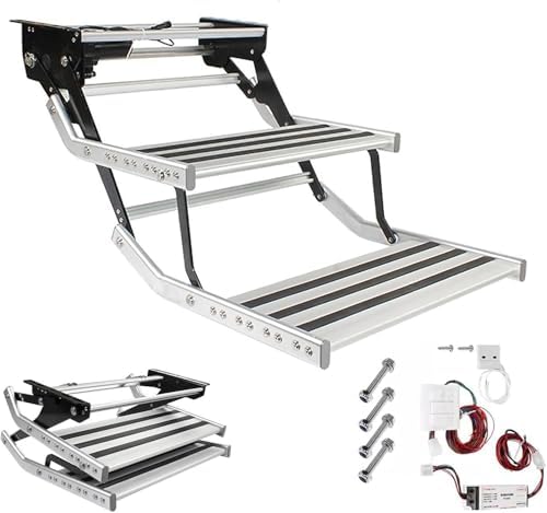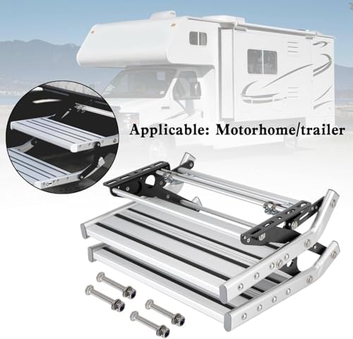 Elevate your RV camping experience with our versatile folding RV steps, designed to enhance convenience and safety. Crafted from premium aluminum, these steps provide a reliable solution for easy access in and out of your RV, ensuring you can enjoy your adventures with peace of mind. **Key Features:** 1. **Manual Operation:** Effortlessly open and close the pedal with a simple push or pull, making setup a breeze. 2. **Electric Convenience:** Choose our electric RV pedal for automatic extension and retraction, perfect for those who prefer a hands-free option. 3. **Heavy-Duty Construction:** Built with sturdy aluminum alloy, our steps support a maximum load of 150 kg (330 lbs), ensuring durability and stability. 4. **Enhanced Safety:** The widened pedal features a horizontal deep groove texture and rubber grip, minimizing the risk of slipping and falls. 5. **Nighttime Visibility:** Equipped with LED lights, these steps offer added safety and convenience during nighttime use, allowing you to navigate easily. **Specifications:** - **Manual Single-Layer Step Stool:** Unfolded size: 501*183*484 mm; Folded size: 393*144*484 mm; Weight: 3.6 kg. - **Manual Double-Layer Step Stool:** Unfolded size: 718*484*272 mm; Folded size: 484*406*216 mm. - **Electric Single-Layer Ladder:** Unfolded size: 570*484*180 mm; Folded size: 400*484*138 mm; Power: motor 80W. - **Electric Double Ladder:** Unfolded size: 859*485*442 mm; Folded size: 517*485*290 mm; Power: motor 80W. **Package Includes:** 1 Folding Camper Stairs **Important Notes:** - Please allow minor size variations due to manual measurement. - Always ensure steps are fully extended before use for optimal safety. Make your RV trips easier and more enjoyable with our reliable folding RV steps, the perfect addition for every camping enthusiast!