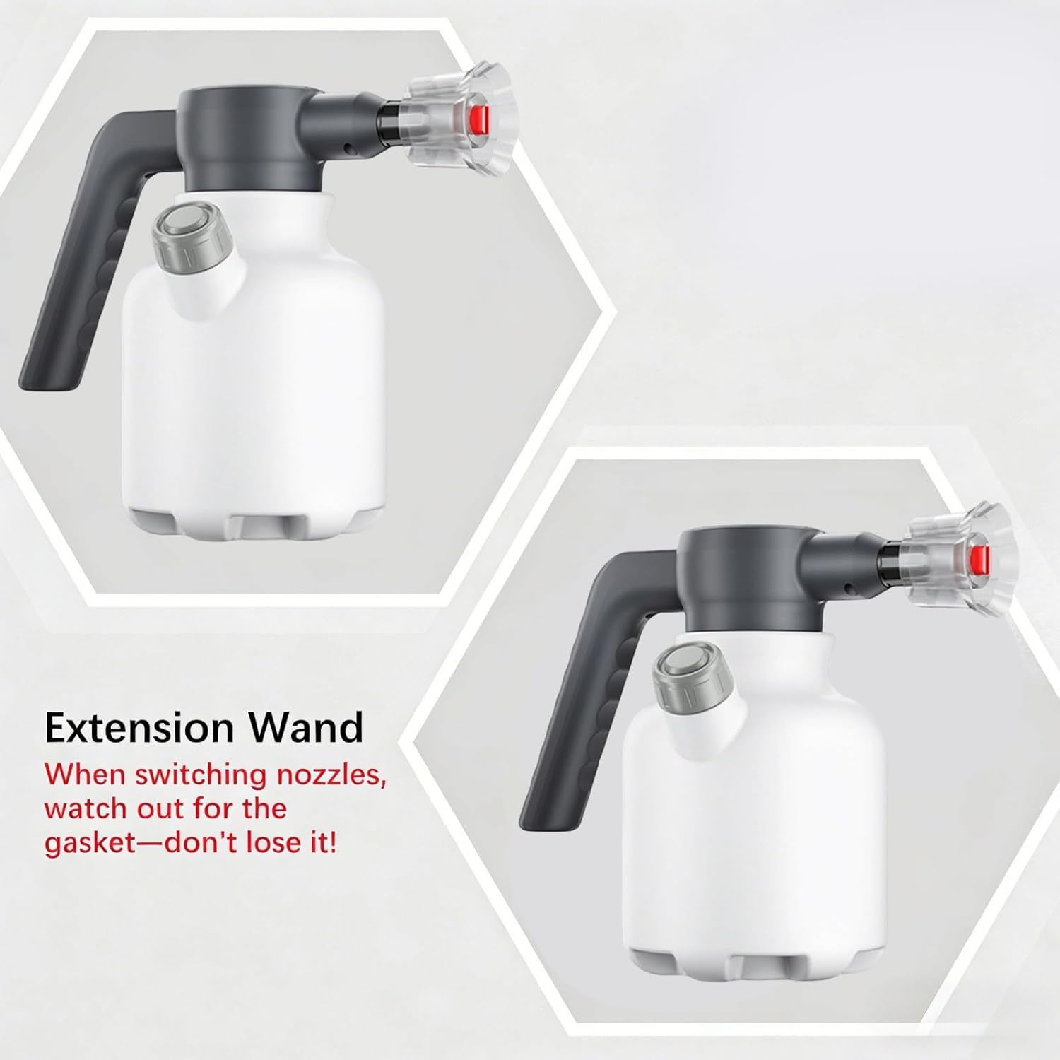 Electric Vehicle Foaming Tool With Ergonomic Handle For Efficient Auto Features : portable car washing with our electric foam sprayer featuring built in suction function , eliminating the need for external water supply Achieve profound with evenly spread rich foam from our innovative sprayer design Built with strong PP+ABS composite substance , this foam sprayer provides excellent resistance against drops and daily wear Designed with a comfortable ergonomic handle for comfortable and effortless action Versatile for washing cars , motorcycles , bicycles , and outdoor maintenance , offering a for various needs Specifications : Substance : constructed of good-quality PP and ABS materials to secure the product ' s durability and effect resistance Technology : Fine processing technology ensures the sealing and service life of the watering can Technical parameters : Electric priming design , and fast ; supports a variety of foam concentration adjustments to meet different needs Size : Ergonomically designed , comfortable to hold and easy to operate selling attributes : Provide a variety of color preferences to meet users ' individualized needs Practicality : Suitable for various vehicles , including cars , motorcycles , Package Includes : Host×1 Electric priming pump×1 Foam sprinkle bottle ( capacity 1L ) × 1 Water inlet pipe ( length 5 meters , substance PVC ) × 1 Outlet pipe ( length 7 meters , substance PVC ) × 1 Quick connector×2 Power adapter ( input 100-240V , output 12V / 3A ) × 1 Chinese-English bilingual user manual×1 promise card×1 Note : Before using the accessory , please check if it is compatible