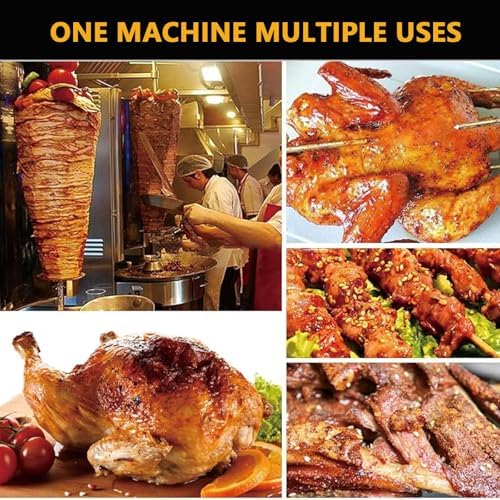 Experience the joy of effortless cooking with our vertical countertop rotating rotisserie oven, designed for barbecue enthusiasts and food lovers alike. This versatile appliance is perfect for preparing mouthwatering kebabs, shawarma, and other grilled favorites right in the comfort of your kitchen. Say goodbye to the hassle of charcoal grilling—our rotisserie oven guarantees a clean and hygienic cooking experience without the fumes. With rapid heating capabilities, this oven reaches temperatures from 50-300℃, allowing you to grill your favorite meats to perfection. Enjoy the convenience of automatic temperature adjustment; just place your marinated meat inside, set the desired temperature, and savor delicious barbecue in no time. The innovative 360° automatic rotating grill ensures even cooking, making it easier than ever to achieve that perfect golden-brown finish. Cleanup is a breeze with the included drip tray, which catches excess fat and juices to prevent mess on your countertop. With a generous capacity of up to 13 pounds of meat, this rotisserie oven is ideal for home barbecues, family gatherings, and even commercial use. Its sleek stainless steel design not only adds a modern touch to your kitchen but also ensures durability and longevity. Whether you're hosting a picnic or preparing a feast for friends and family, our vertical rotisserie oven is your go-to solution for delicious and hassle-free barbecue meals. Elevate your cooking experience today! Specifications: - Voltage: 110V/220V - Power: 2400W-110V, 3000W-220V - Frame Material: Stainless steel - Heating Method: Electric - Product Size: 300*300*490mm - Weight: 5KG Packing List: 1 x Vertical Barbecue Stove (Optional: 1 x Vertical Barbecue Stove + 1 x Slicing Knife) Slicing Knife Specifications: - Voltage: 110V/220V - Power: 80W - Size: 26*17*25cm - Weight: 1.8KG Make every meal a celebration with our rotisserie oven and enjoy perfectly cooked dishes every time!