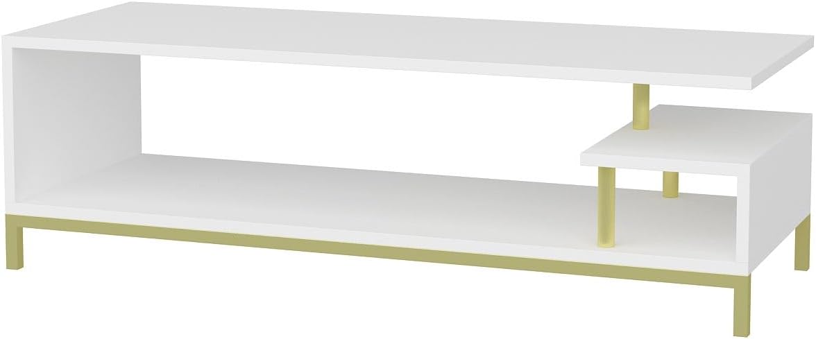 Introducing our exquisite TV Stand, a perfect blend of elegance and functionality that will transform your living space into a captivating haven. Unleash the Power of Elegance Designed with utmost precision, this TV Stand boasts a stunning combination of gold and white colors, creating a mesmerizing visual appeal that will leave your guests in awe. The sleek and modern design adds a touch of sophistication to any room, making it the focal point of your entertainment area. Experience Unmatched Functionality Crafted with 100% melamine coated particle board, this TV Stand is not only visually appealing but also built to last. The 18mm thickness ensures durability and stability, providing a sturdy platform for your television and other media devices. With a width of 120cm, depth of 44.6cm, and height of 37.6cm, it offers ample space to accommodate all your entertainment essentials. Transform Your Living Space Enhance your home decor with this TV Stand that effortlessly combines style and practicality. Its spacious shelves provide convenient storage for your DVD player, gaming consoles, and other accessories, keeping your living area organized and clutter-free. The gold and white color combination adds a touch of luxury, elevating the ambiance of your room to new heights. Technical details: Material: 100% melamine coated particle board. Thickness: 18 mm. Width: 120 cm Depth: 44.6 cm. Height: 37.6 cm. Colour: gold and white. Upgrade your entertainment area with our exceptional TV Stand and create a space that exudes elegance and functionality. Order now and experience the perfect blend of style and practicality in your home.