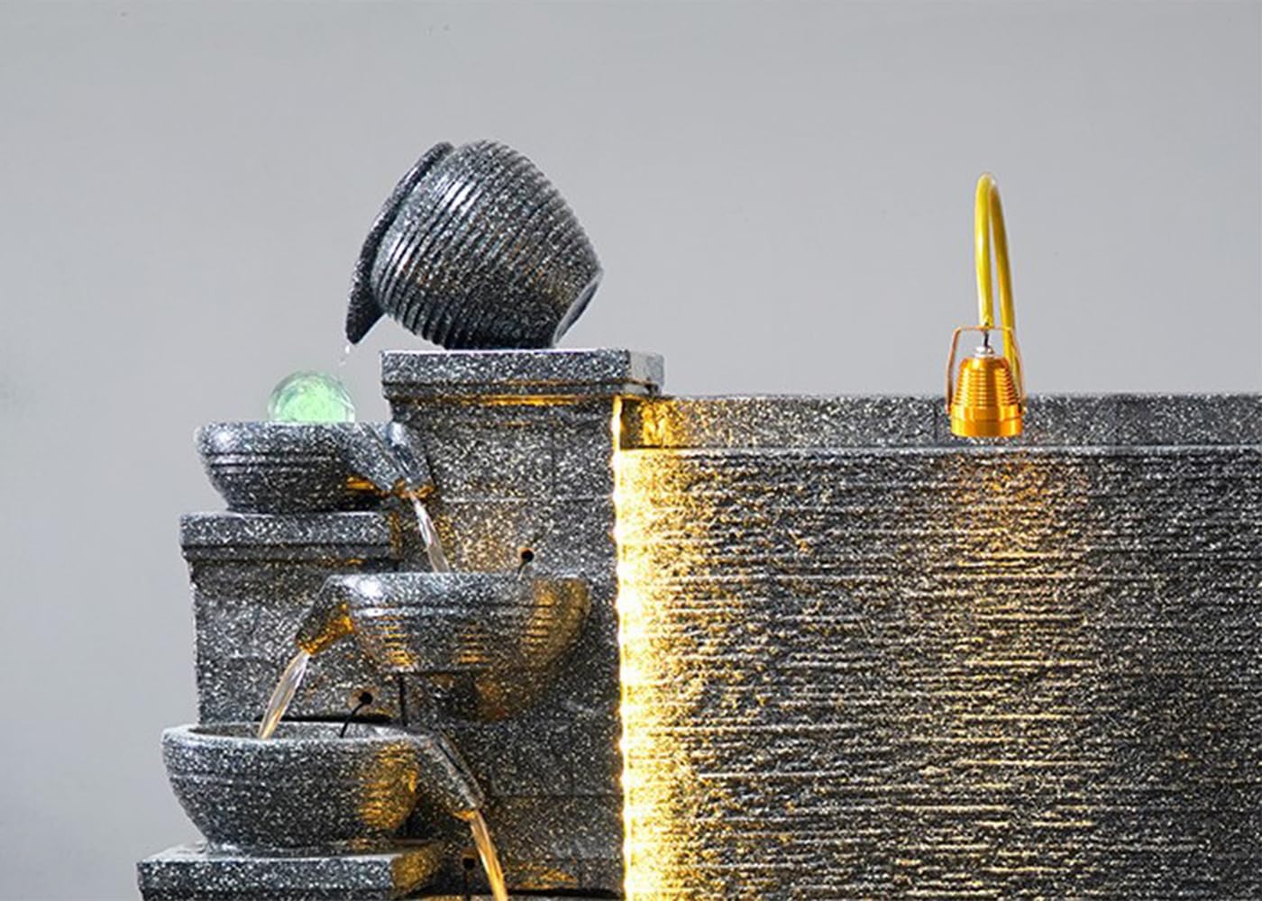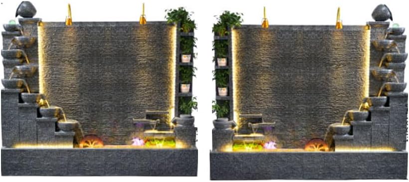 Transform Your Space with the Dual-Sided Elegant Stone Waterfall Fountain with LED Lights Enhance your home or garden with the breathtaking presence of our Elegant Stone Waterfall Fountain. This dual-sided masterpiece, available in various sizes from 160 to 200 cm in height, is designed to bring tranquility and beauty to any space. With cascading water flows, integrated LED lighting, and thoughtfully crafted planter shelves, this fountain is not only a decorative centerpiece but also a functional addition to your decor.