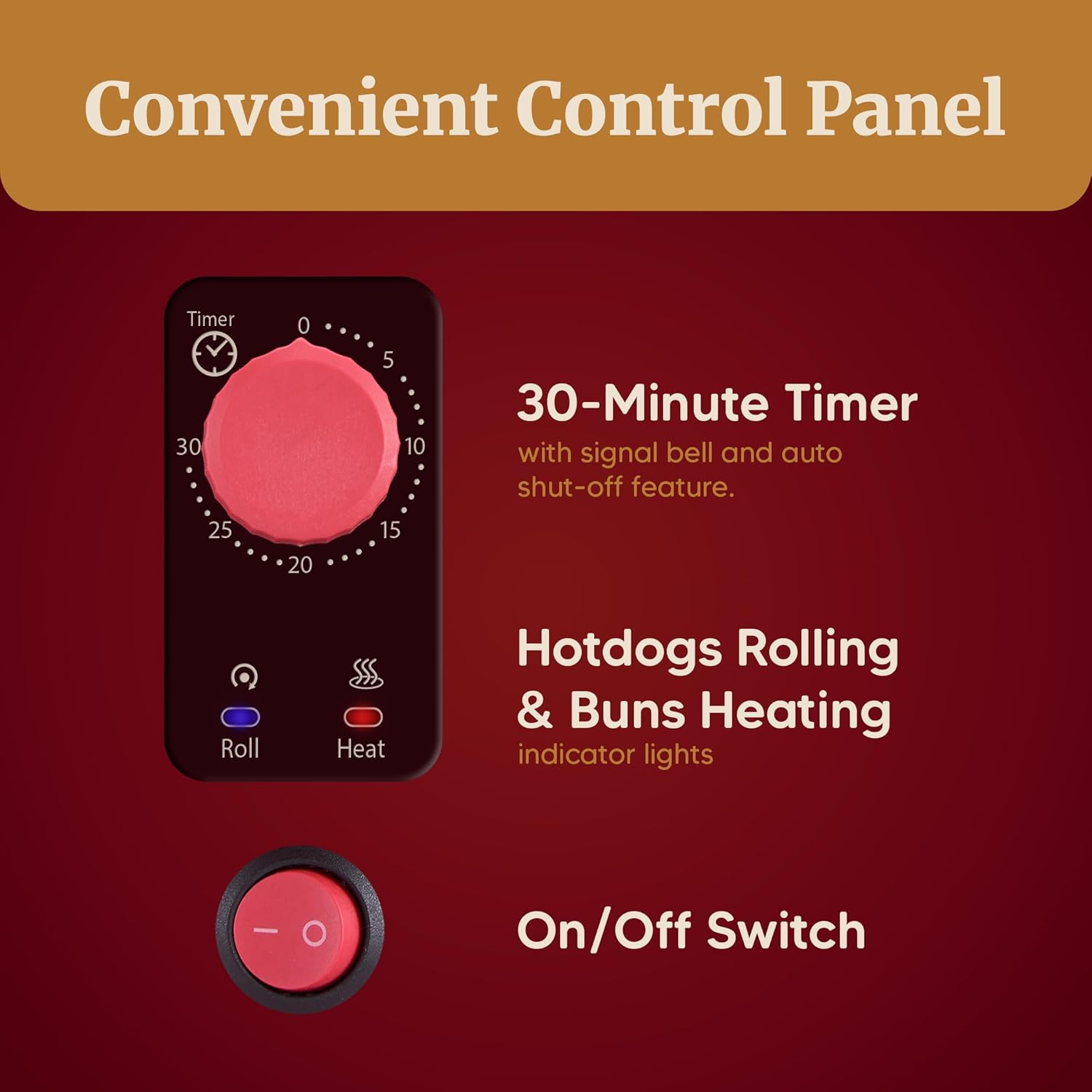 The Elite Gourmet Countertop 8-Hot Dog Roller & Bun Toaster Oven transforms any gathering—barbeques, cook-outs, movie nights, parties, birthdays, or casual family dinners—into a delicious, hands-on hot dog experience. Designed for effortless & fun entertaining, this compact countertop unit delivers sizzling, evenly cooked hot dogs and warm, perfectly toasted buns in minutes. Equipped with five stainless steel rotating grill rollers, the oven cooks up to eight hot dogs evenly on all sides, while the toaster oven heats buns and prepares a variety of snacks such as taquitos, egg rolls, or other small bites. A see-through oven door and cool-touch handle offer safe, easy monitoring, and the rolling grill and heat indicator lights ensure simple operation. The built-in 30-minute timer with bell indicator and auto shut-off helps prevent overcooking, making mealtime stress-free. Cleanup is easy with the removable aluminum drip pan/bake tray, and the hinged dust cover keeps the rollers protected during storage. Versatile and fun, this hot dog roller toaster oven is also great for warming breads and snacks—perfect for quick meals and crowd-pleasing convenience.