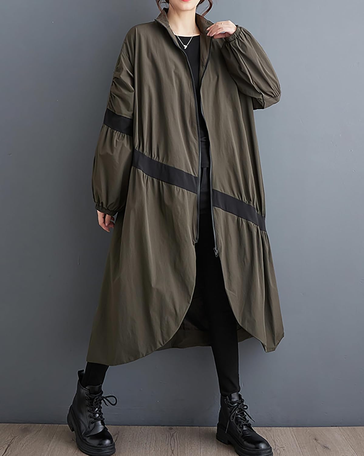 Onesize: Length 44.5 in/ Bust 52.0 in/ Sleeve 19.7 in(fits Small-X-Large) Fit Occasions: Womens Designer Coat suitable for Any Occasions, Such As Party, Club, Cocktail, Shopping, Wedding, Work, Vacation, Beach, Daily Wear, Wedding Guest, Dating, Maternity or Semi-formal Wears Features: This women's mock neck coat satisfy the need of the bad weather. The design can make people escape the harm in rainy day, what's more the long sleeve make you warm and comfotable on cooler day. The zip up design for easily wear. Moreover, this coat adopts print design and has an exquisite and stylish appearance. The loose, oversized fit ensures comfort and a relaxed style. Convenient side pockets for hands-free movement Material: 75% Cotton + 25% Polyester, sweat absorption, breathable, more comfortable and soft to wear. Lightweight, comfy and soft skin-friendly fabric. High-quality material, breathable to wear Season: loose and casual style, wearing on Winter and Fall