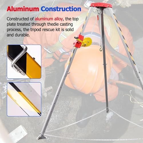 Experience peace of mind with our advanced confined space access and emergency rescue system, expertly engineered for safe entry and exit in challenging environments. This versatile kit features a robust aluminum construction, ensuring durability and reliability when you need it most. The adjustable tripod legs extend from 1.25 to 2.15 meters (4.1 to 7.1 feet), accommodating various working conditions, making it an ideal choice for industrial settings, construction sites, and emergency scenarios. With winch options of 1200lbs (544.3kg), 1800lbs (816kg), or 2600lbs (1179.3kg), our system is designed for efficient operation, requiring only a manual handle force of 500 N for seamless lifting and lowering. Safety is prioritized with ring protection chains that prevent slipping, providing stability during critical operations. The retractable and foldable design enhances portability, allowing for easy transport and storage, making it perfect for professionals who need to navigate confined spaces regularly. Whether you’re conducting maintenance, rescue operations, or working in tight areas, our confined space rescue tripod ensures you have the right tools at your disposal. Included in the package is one confined space rescue tripod, expertly crafted to meet rigorous safety standards. Please note that slight variances in dimensions may occur due to manual measurements, and product images may vary based on display settings. Equip yourself with a reliable solution that combines safety, efficiency, and convenience for all your confined space needs.