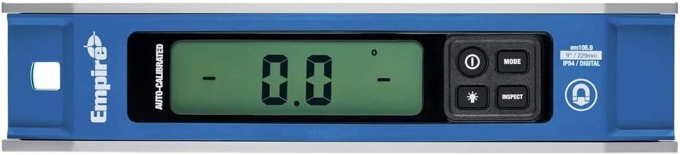 The Empire em105.9 9" Magnetic Digital Torpedo Level is ready to measure accurately when powered on and features auto-calibration allowing users to get a clear and precise digital readout immediately. The torpedo level features six measure display modes, enabling users to make precise measurements in a wide range of outputs. These include measurements in degree-tenths, mm/M. or percentage. Users also have the option to take rough-in mode measurements in degrees, in/ft. fractions or in/ft. decimals. For even further versatility, inspect mode enables users to zero out the digital torpedo level, which is ideal for conduit bending applications. The Empire magnetic digital torpedo level features rare earth magnets, allowing it to attach to most metal surfaces for ease of use.