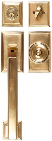 Entrance Handleset Brass Tubular - Hamden Single Cylinder - Waverly Knob - French Antique - 4213.W.US7