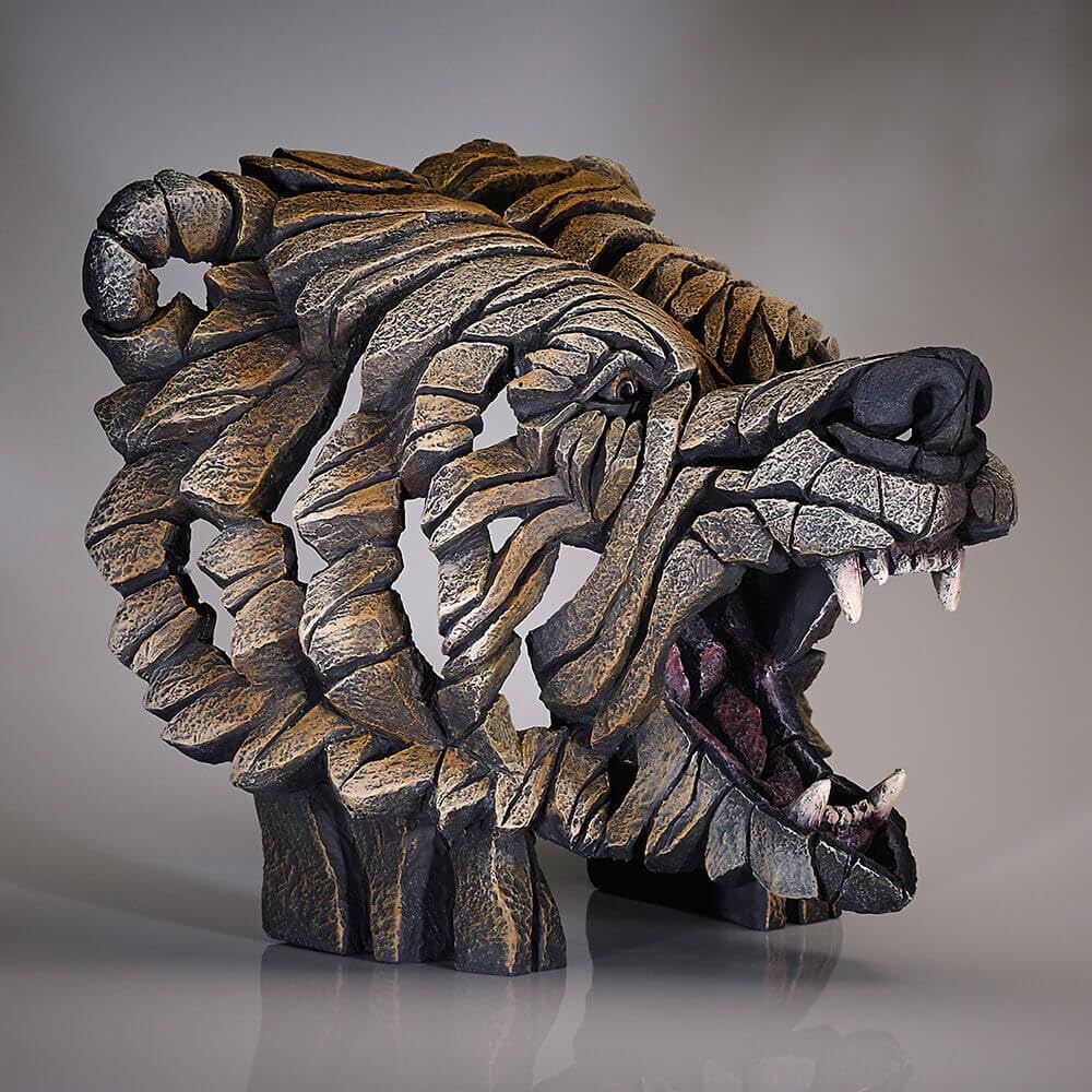 Edge Sculpture is a most striking collection of contemporary sculpture. It is emotionally evocative, fiercely modern, yet remains utterly affordable. Designed and sculpted in England by Matt Buckley at his studios in Shropshire, Edge Sculpture is influenced by style rather than subject. The mix of form, light and texture gives a unique feel to each piece. The grizzly bear is the most powerful predator in North America, a hunter that is not only monstrously strong but surprisingly cunning as well. The ferocious face of a grizzly bear in mid-roar can be yours with this breathtaking bust by Edge Sculpture. About Us: Enesco is committed to BRING JOY EVERY DAY. The premier global destination for high-quality giftware, and home décor, our prestigious family of brands includes: Department 56 Village, Izzy and Oliver, Foundations, Jim Shore Heartwood Creek, Disney Traditions by Jim Shore, Disney Showcase Collection, Disney by Britto, Designs by Lolita, Our Name Is Mud, and many more.