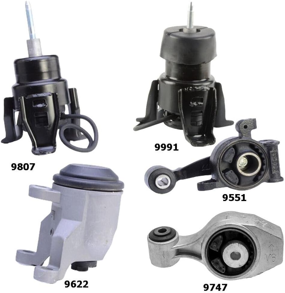 FitmentPlease check top Automotive Fitment Filter and Description to see if this item will work on your vehicle before purchasePart Number11270-JA10A,11360-4RA0A,A7381,11350-4RA0A,11210-3KA0A,11320-3NT0A,A7393,A4365hy,A7386,A7396Contents1x 9747 - Engine Torque Strut Mount-Right Upper1x 9551 - Engine Torque Strut Mount-Rear Lower1x 9622 - Engine Mount - Right (Hydraulic Part)1x 9807 - Engine Mount - Rear (Hydraulic Part with Vacuum)1x 9808 - Engine Mount - Front (Hydraulic Part with Vacuum