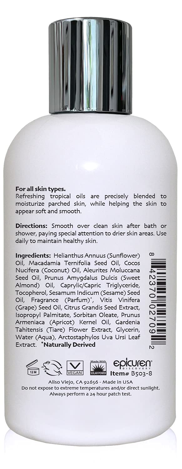 | Additional Features | Refreshing tropical oils are precisely blended to moisturize parched skin. |