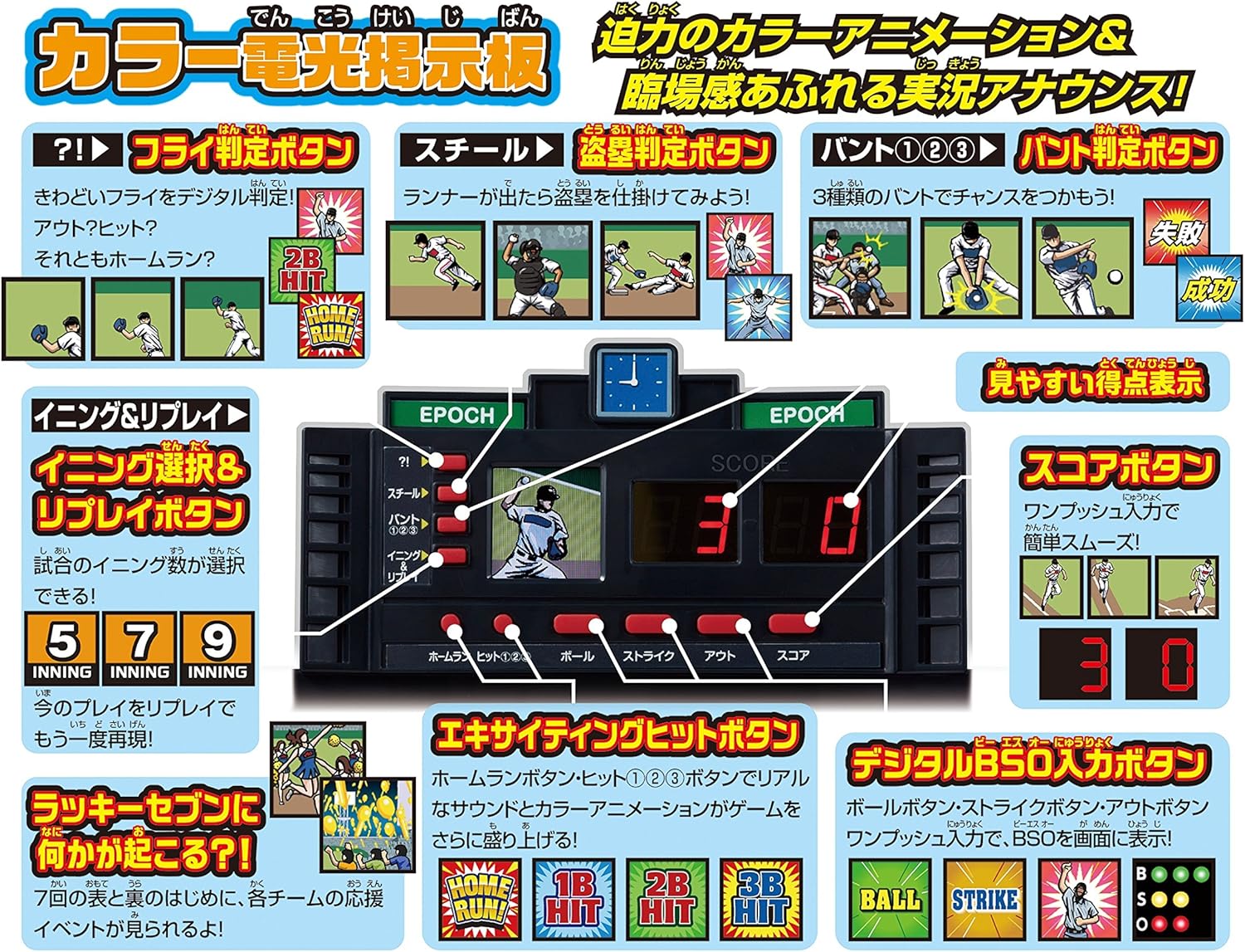 Type: single item Ball 3D pitching featured fly through the air! 2D · 3D pitching a total of nine Pitching is possible, disappear magic ball will be thrown. The batter set the two types of lefties and right batter. In 3D batting fly in the air, the exciting home run hit balls to stand-in directly You can shoot. Color electronic scoreboard installed, with colorful animation and play-by-play announcement Battle of incandescent can be enjoyed. [set content] Baseball board main body, color electronic billboard, batter doll (right-handed, left-handed), pitcher doll, Fielder doll x7, runner doll x3, the outer fence x2, lighting parts x2, Home run fence (straight line, curve) x each 2, glove pocket x4, count pin x3, ball x6