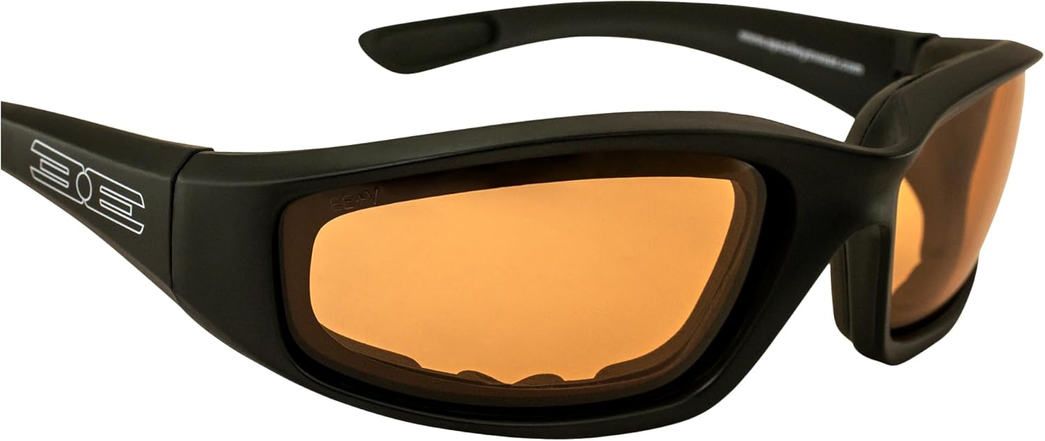 The Epoch Eyewear Auto-Darkening Foam Padded Motorcycle Sunglasses are the most comfortable and clear glasses you've ever worn. Riders who have to deal with light situations that change all the time will love these sunglasses. A new type of lens called photochromic changes from amber to smoke when it comes in touch with sunlight. This makes it easier to see in dim light and lessens the glare in bright light. This lens changes right away to the light, so you won't have to switch glasses while you're on the ride. This way, you can see clearly and easily from dawn until dusk. The Epoch Foam Padded Sunglasses have ANSI Z87.1+ safety standards and frames made of plastic that won't break. They keep wind, dust, dirt, and bumps from getting into your eyes. Also, the lenses completely stop UVA and UVB rays, which means they offer full UV400 protection. During long rides, this keeps your eyes from getting tired and strained. These are great for riding both during the day and at night because the amber tint makes it easier to see contrast and depth. The black frame is strong and light all the way around. It's made to keep you safe and comfortable even when you're going fast. Inside, the foam padding forms a tight seal around your eyes to protect and relax you while blocking out wind noise. This layer doesn't scratch, so the lens stays clear. This way, you can enjoy a long ride without any distortion. When you're riding your bike on the highway, off-road trails, or in changing weather, the Epoch Auto-Darkening Motorcycle Sunglasses give you the best safety, clarity, and comfort. They work well, look good, and last a long time. Motorcyclists, people who like being outside, and people who want all-day comfort and flexible view will love them.