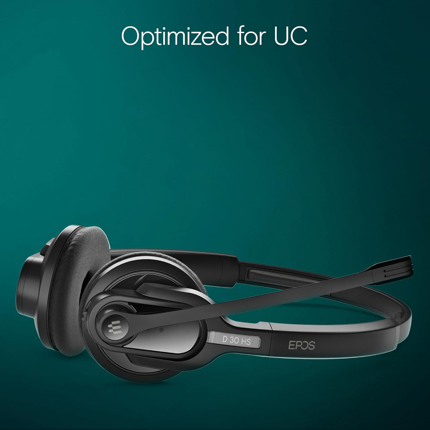 With premium audio performance and powerful wireless reach, your journey towards wireless freedom starts here. Keep desks tidy with a streamlined design ideal for hotdesking when agents need plug and play functionality at every workstation. Prioritize the customer experience with EPOS Voice™ technology that zooms in on the agent’s voice. The resulting crisp, clear calls, help them solve issues quickly and calmly throughout their working day. In today’s digital world, companies are more exposed than ever to hostile online threats. When it comes to the security of your data, protected pairing and DECT security certification guarantees no third parties are listening in on your call. With its double-sided wearing style for 100% focus and single connectivity to PC, the IMPACT D Series makes high quality wireless DECT headsets accessible to all. What's in the Box: Headset, base station, power supply, audio phone cable, printed quick guide, printed safety guide