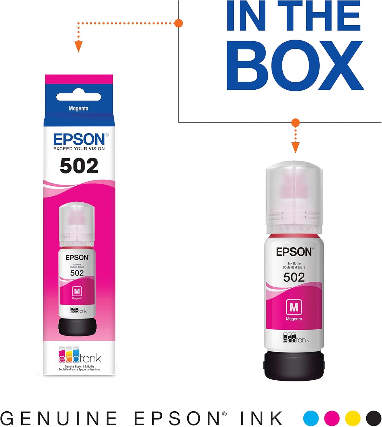 EPSON 502 EcoTank Ink Ultra-high Capacity Bottle Magenta Works with ET-2750, ET-2760, ET-2850, ET-3750, ET-3760, ET-3850, ET-4850, and other select EcoTank models, Magenta