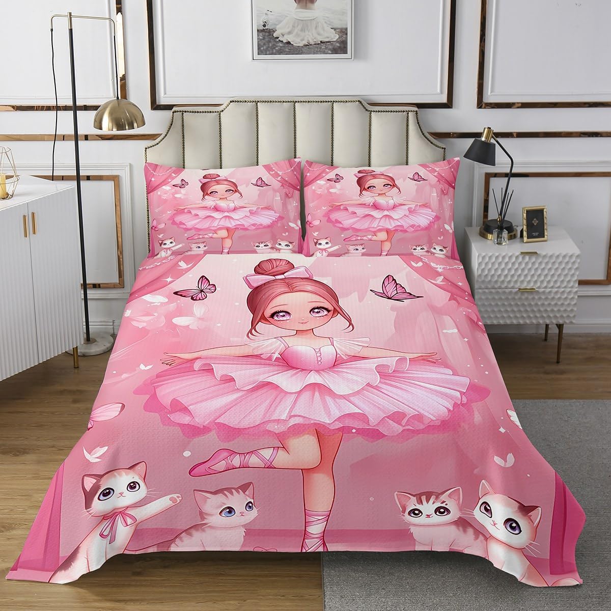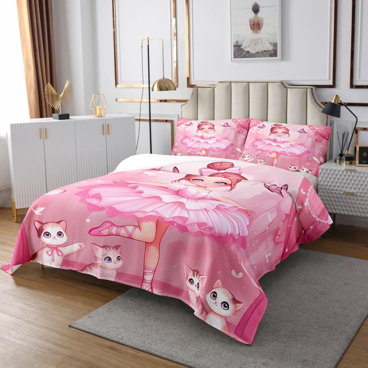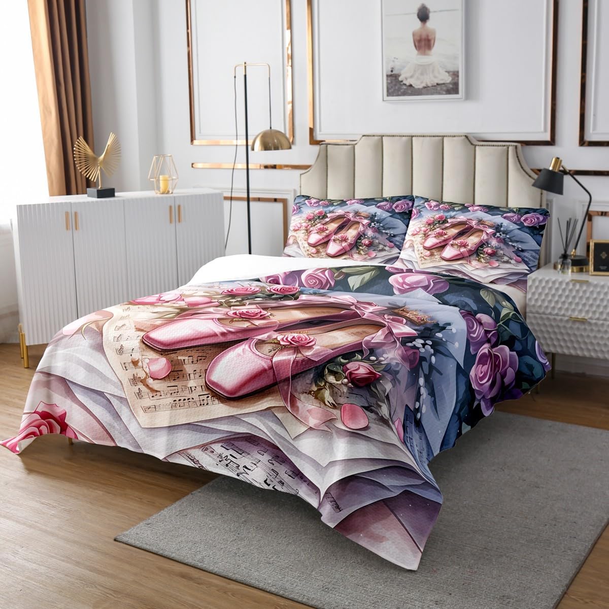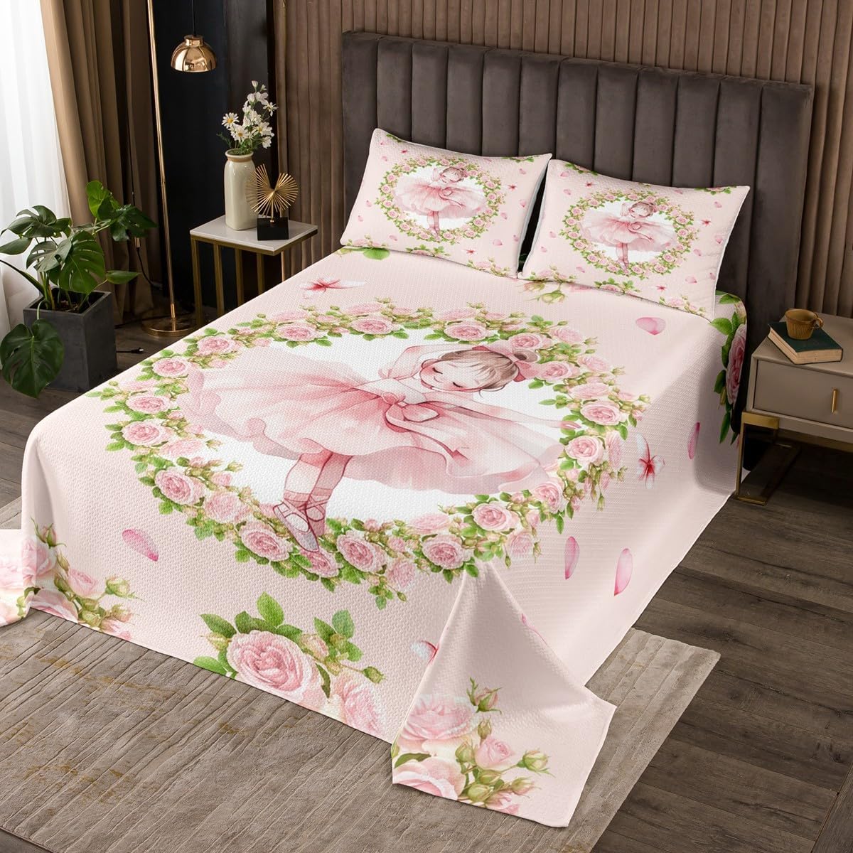 Erosebridal Ballet Bedspread Queen Dance Ballet Mustical Quilt Set Pink Ballerina Design Coverlet Set for Kids Adults,Aesthetic Rose Flowers Bedding Quilted