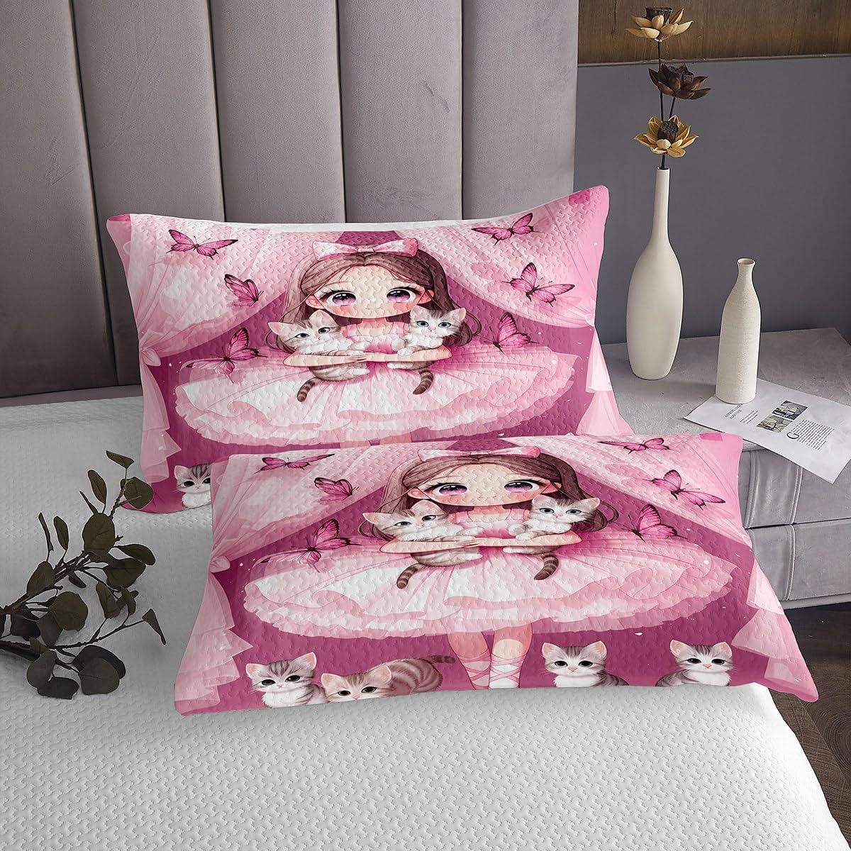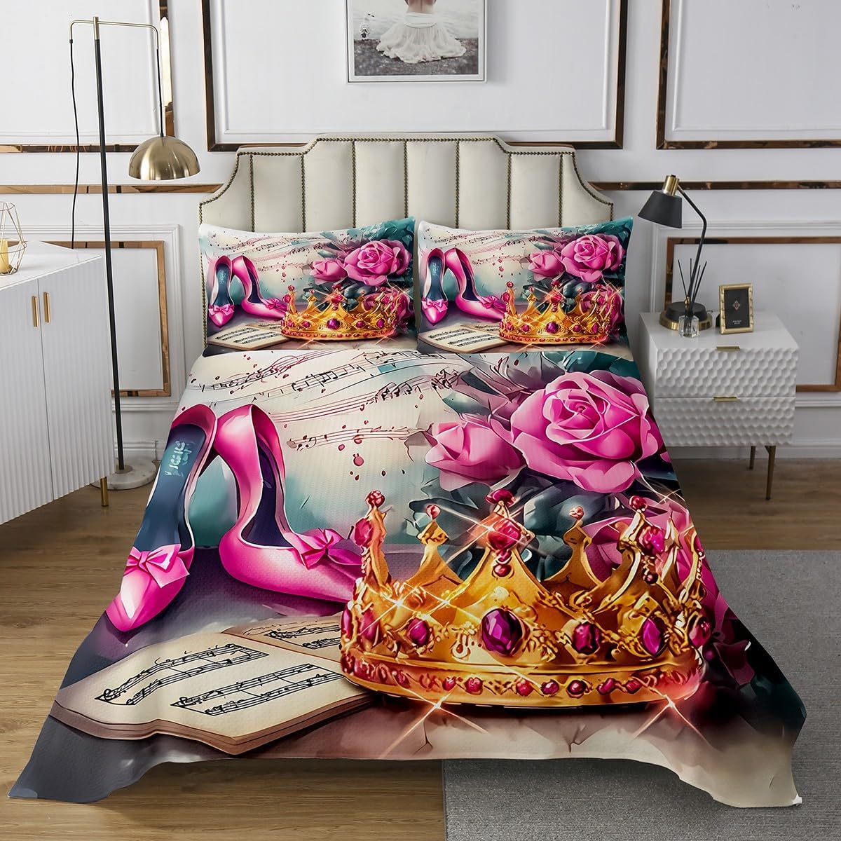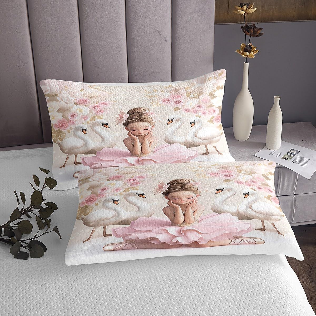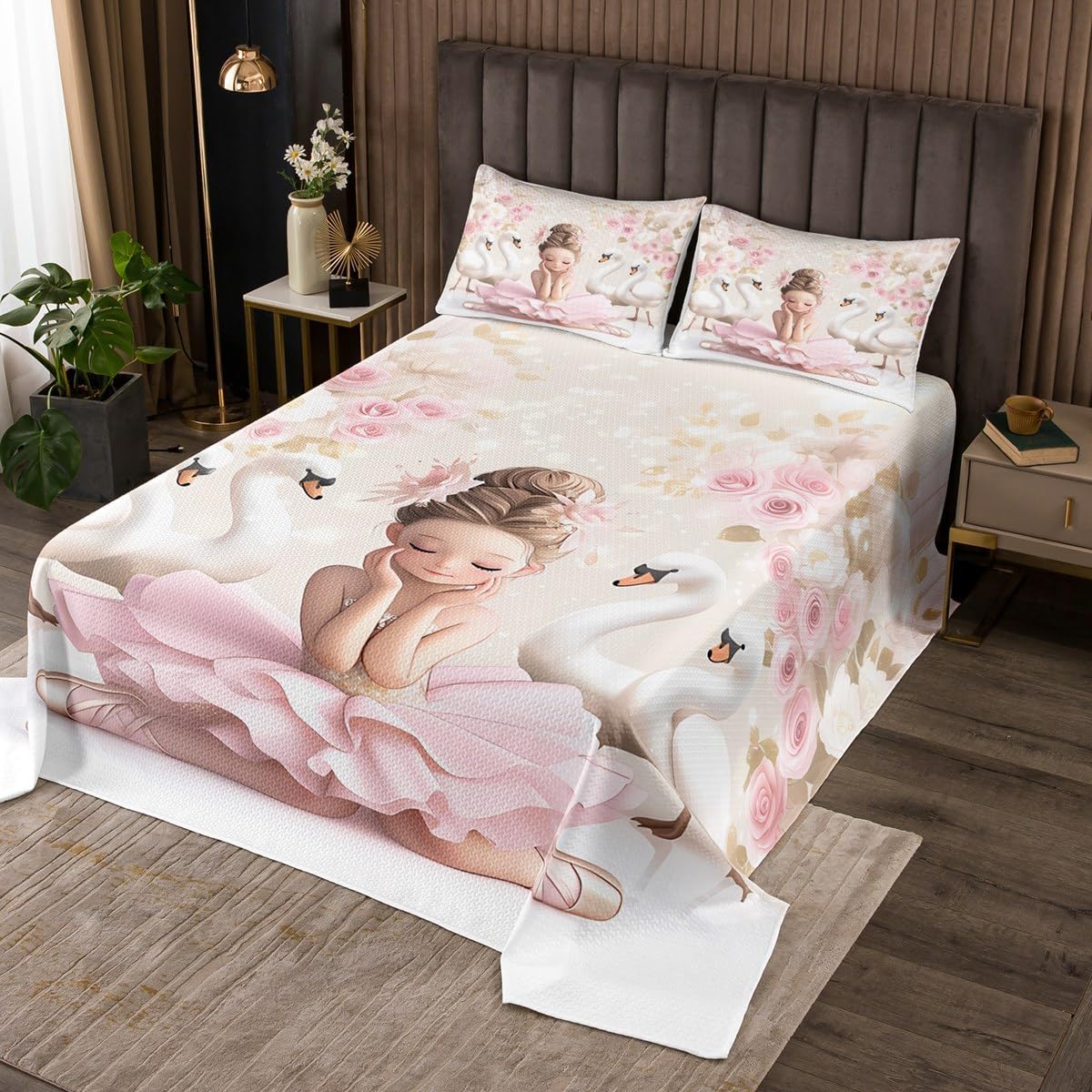 Erosebridal Ballet Bedspread Queen Dance Ballet Mustical Quilt Set Pink Ballerina Design Coverlet Set for Kids Adults,Aesthetic Rose Flowers Bedding Quilted