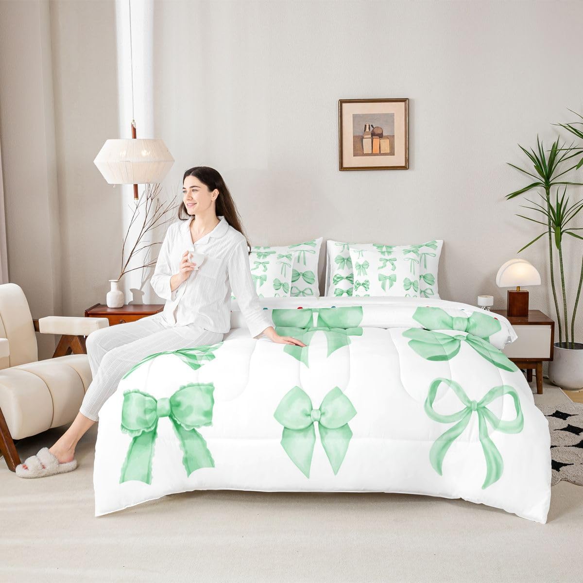 Size Information Twin : 1 Comforter: 68"x90",1x Fitted Sheet 39"x75"x16",1x Flat Sheet 96"x66",2x Pillowcases 20"x30" and 2 Pillow Cover 18"x18" Full : 1 Comforter: 79"x90",1x Fitted Sheet 54"x75"x16",1x Flat Sheet 96"x66",2x Pillowcases 20"x30" and 2 Pillow Cover 18x18" Queen : 1 Comforter: 90"x90",1x Fitted Sheet 60"x80"x16",1x Flat Sheet 102"x90",2x Pillowcases 20"x30" and 2 Pillow Cover 18"x18" King : 1 Comforter: 104"x90",1x Fitted Sheet 78"x80"x16",1x Flat Sheet 106"x90",2x Pillowcases 20"x36" and 2 Pillow Cover 18"x18" Style Variety: Available in multiple styles. Suitable Spaces: For use in bedrooms, guest rooms, living rooms, or RVs. Printing Process: Manufactured using reactive printing and dyeing technology. Design Feature: Diverse pattern options. Care Instructions: Machine washable. Air dry. Low-heat ironing recommended. Not suitable for bleach, dry cleaning, or machine drying. Intended Decor: Designed for home textile applications.