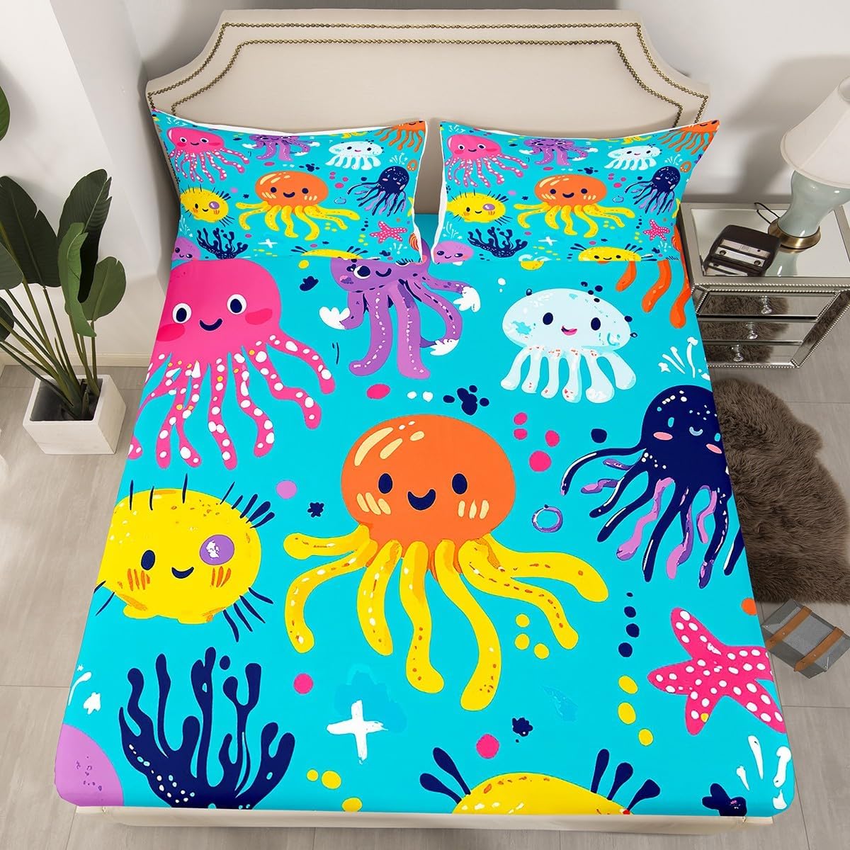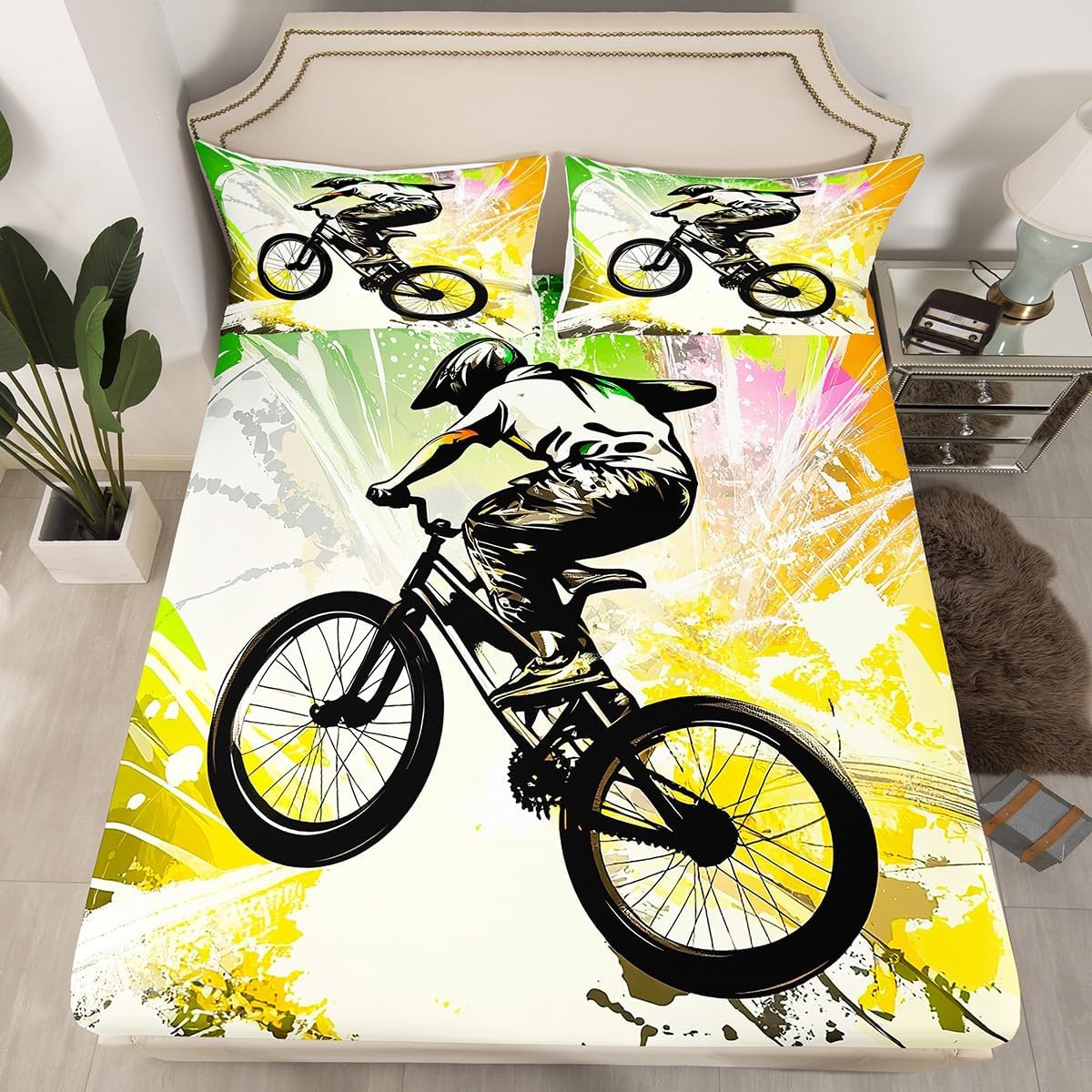 Size Information Twin size: 1 Fitted Sheet 39"Wx75"Lx16"H and 1 Pillowcase 20"Wx30"L. Full size: 1 Fitted Sheet 54"Wx75"Lx16"H and 2 Pillowcases 20"Wx30"L. Queen size: 1 Fitted Sheet 60"Wx80"Lx16"H and 2 Pillowcases 20"Wx30"L. Versatility We have many kinds of styles for you to choose. You can easily find a product that suits the style of your room. The item is not only suitable for your home, bedroom, guest room, living room, or rv, your families, friends, relatives, boyfriend, girlfriend. Modern Design The luxury aesthetic bedding set is made reactive printing and dyeing process. The pattern is clear, the color is bright, which will not fade after repeated washing. Personalized As a manufacturer of digital printed home textiles, we follow current trends and bring you the latest and stylish home textile products. The item will make the room decorated in exquisite taste.