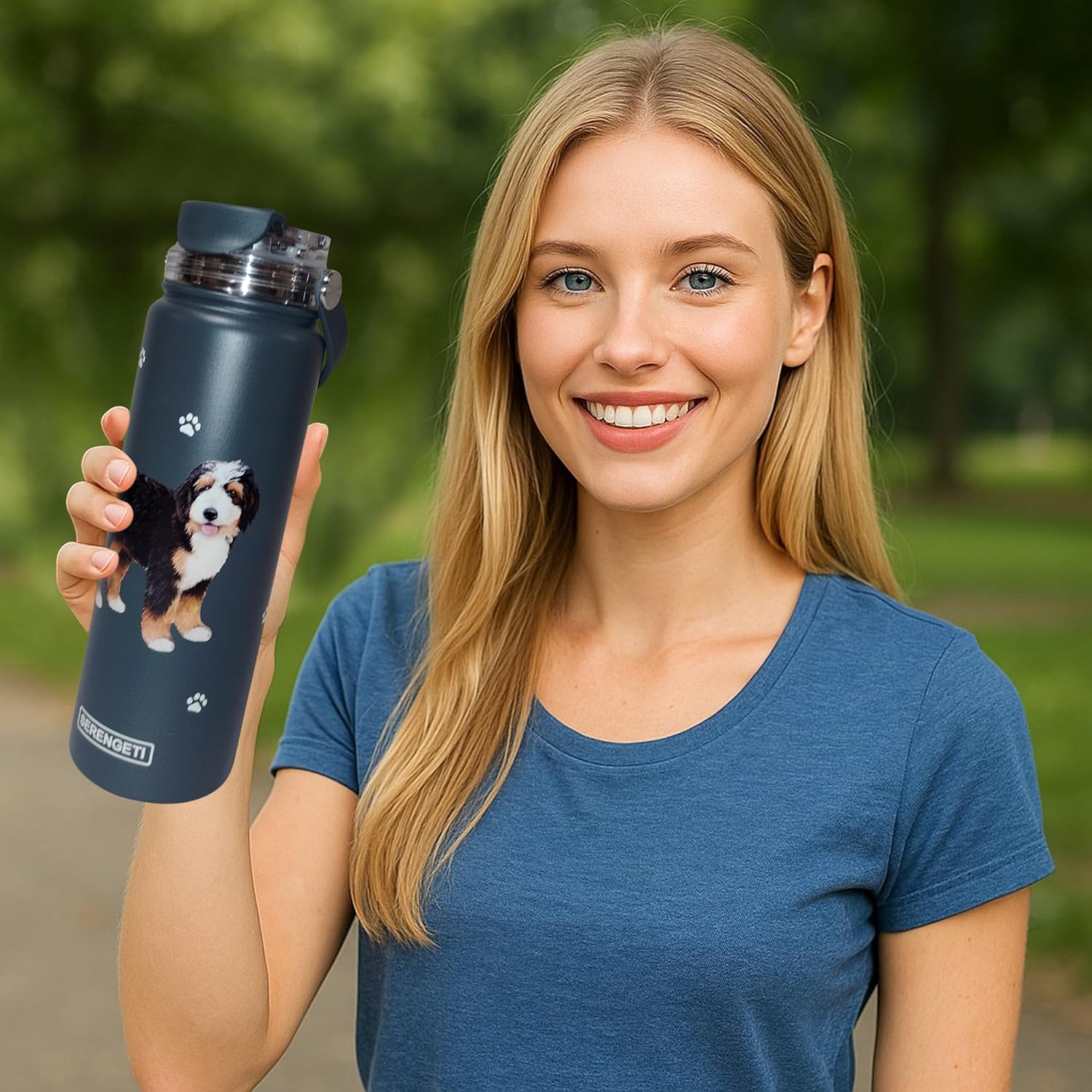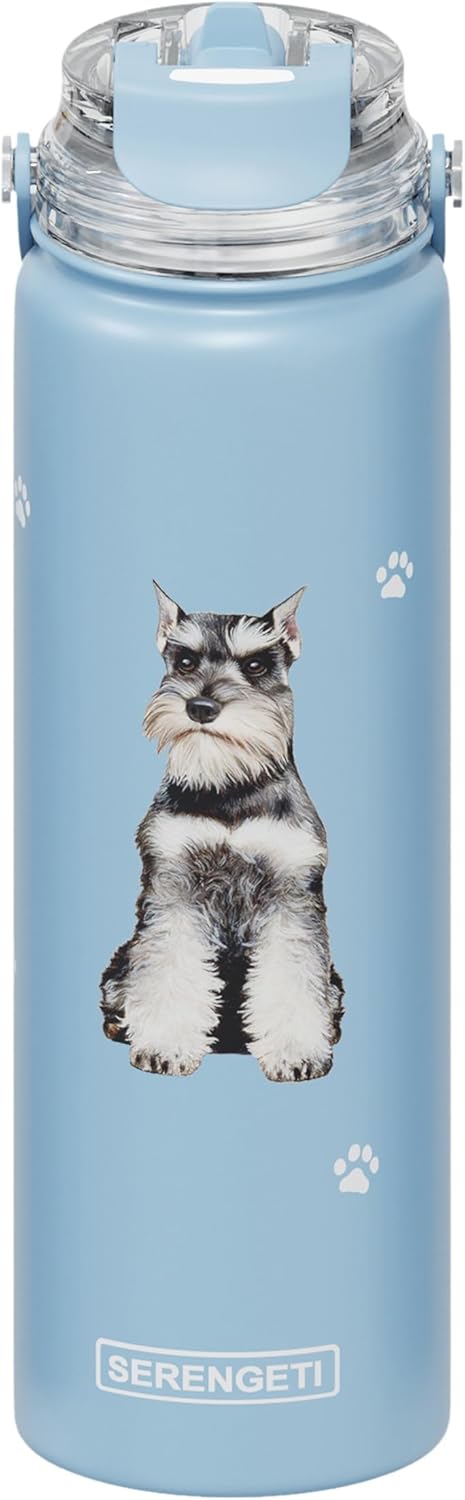 Our SERENGETI leak proof water bottels are tough as nails, and will keep your drinks cold or hot for hoursWith the spill proof lid with straw it's easy to enjoy your drinks more than ever before. Our solid double wall vacuum insulation allows you to bring your favorite drink anywhere.The Serengeti water bottle insulated is designed to fit a standard sized cup holder so you can bring it to work, dog walk or for exploring the outdoors. Whenever you're spending time outdoors, having the right type of reusable water bottle is essential for travel.The Serengeti stainless steel water bottles are built to to keep your drink hot or cold for hours and take the beating of the day.The 3D German Printing Technology offers a high gloss finish. You will love the artwork of your favorite dog or cat. The artwork is realistic and the dogs and cats are slightly raised with the 3D printing. This will become your most favorite water bottle yet.
