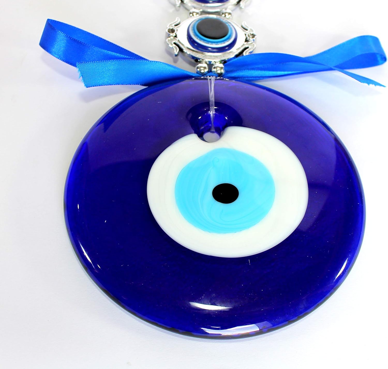 Attractive Turkish evil eye good luck charm hanging in glass, the Turkish evil eye removes negative vibes, bad energies from your surroundings i.e home, office etc. The blue evil eye is used for luck, prosperity and security. It is good to place the evil eye hanging at your front door of your home, office etc. The blue evil eye in Turkey(Nazar Boncugu) is used as protection against bad luck. This hanging is a perfect gift for birthday , Eid ,Diwali, Raksha Bandhan, Christmas or any other occasion.