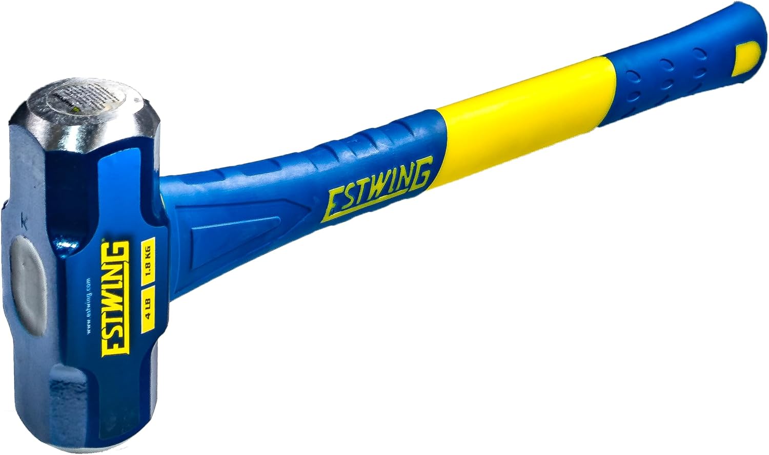 Estwing 4-Pound Hard Face Sledge Hammer, 50-55 HRC, 16-Inch Fiberglass Handle, Overstrike Protection, Textured GripDrive stakes and rebar, shatter stone and concrete, and perform heavy demolition or industrial construction projects with the hard hitting power of this Estwing sledge hammer. Designed and built for heavy-duty use, this hammer features a 4 lb. forged alloy steel head with striking ends hardened to 50-55 HRC to withstand years of repeated impacts without deforming. This head is mounted to a 16-inch long, fiberglass handle that is double injected for increased strength and durability. A textured rubber overlay on the handle provides a comfortable, ergonomic, and secure grip in both grip positions while also helping to dampen vibrations. Below the striking head the handle and rubber overlay are thicker to provide increased overstrike protection to prevent damage from missed hits.ESTWING Sure Split Wedge - 5-Pound Wood Splitting Tool with Forged Steel Construction & 1-7/8" Cutting Edge - E-5Estwing's unique 5lb Sure Split splitting wedge has a revolutionary concept in design which makes splitting wood fast and easy. The wedge has a fast taper head for easy starting. The Sure Split fins permit extra wedge action and the sledge will continue through out below the wood line for sure splitting.