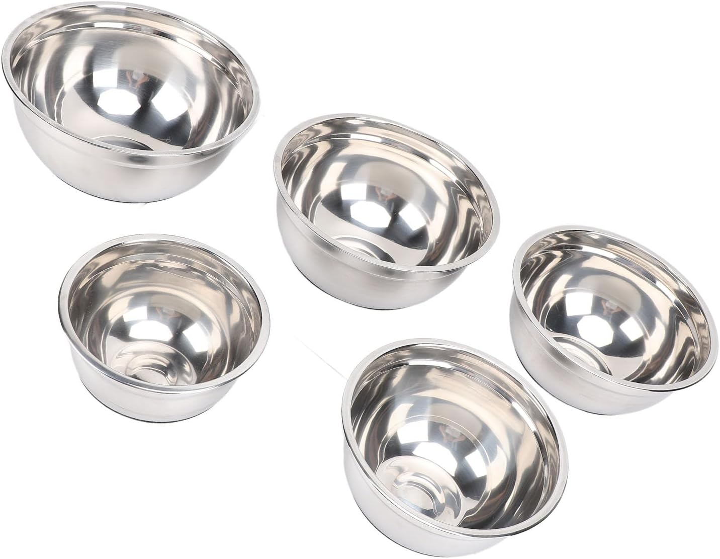 1. Stainless Steel: Crafted from excellent stainless steel material, this mixing bowl set is built for durability, ease of maintenance, and guaranteed security in cooking preparation, great for health conscious cooks 2. Versatile Use: Designed with versatility in mind, these bowls can seamlessly transition from whisking eggs to mixing dough to serving salads. Their diverse functionality makes them an essential addition to any kitchen 3. Stylish and Practical: Featuring an elegant and stylish design, these mixing bowls not only perform well but also add a touch of sophistication to your kitchen countertop, glossy finish complements modern kitchen decor 4. Thickened Design: With a commercial level thickness, these stainless steel bowls are crafted to withstand heavy duty use without warping or bending, making them ideal for both home chefs and busy restaurants 5. Multiple Sizes: Available in a range of sizes, this metal bowl set offers flexibility to meet any mixing or storage need, each bowl fits seamlessly into your culinary routine, ensuring easy access and organized storage Spec: Item Type: Mixing Bowl Set Material: Stainless Steel Weight: Approx. 1292g / 45.6oz Bowl Diameter: Approx.17.5cm / 6.9in, 19.5cm / 7.7in, 21.5cm / 8.5in, 23.5cm / 9.3in, 26cm / 10.2in Package List: 5 x Salad Bowls 5 x Lids