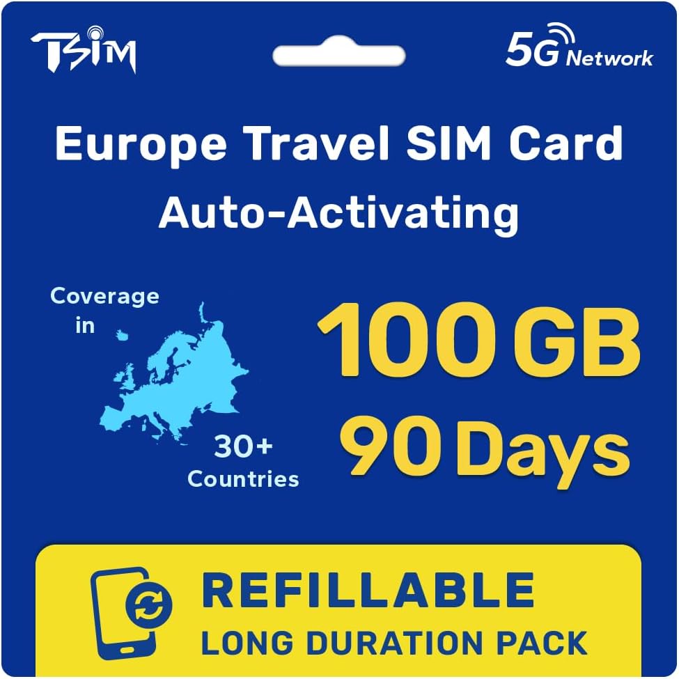 Europe SIM Card 90 Day 50GB. Refillable!Use optional InstaSIM App to:Track usageRefillContact helpdeskNetwork Hopping Feature for Best Coverage:SIM switches between 77 networks in Europe to give you best coverage even in remote areas.NETWORKS: AUSTRIA: Mobilkom Aus,Hutchison DrBELGIUM: Proximus-- SBULGARIA: Telenor Bulg,Mobiltel EADCROATIA: Vipnet,TELE2CYPRUS: MTN Cyprus,Cyprus TelecCZECH REPUBLIC: Vodafone Cze,O2 Czech RepDENMARK: TDC A/S,Hi3GESTONIA: Estonia EMT,Tele2 Eesti FINLAND: Elisa Oyj,DNA Plc,Alands Telek,Telia CarrieFRANCE: Societe Fran,Free Mobile ,Orange,BOUYGUES TELGERMANY: Vodafone Gmb,Telefonica GGREECE: Wind Hellas ,Vodafone PanHUNGARY: Vodafone,Pannon GSMICELAND: Syn hf,Siminn hf.IRELAND: Hutchison 3G,Meteor MobilITALY: Wind Tre S.p,Iliad Italia,Wind Tre S.p,Vodafone ItaLATVIA: BITE Latvija,SIA Tele2,Latvijas MobLIECHTENSTEIN: Mobilkom,Salt (LiechtLITHUANIA: Telia Lietuv,UAB Bite Lie,Tele2 UABLUXEMBOURG: POST Luxembo,Tango SAMALTA: GO MOBILE Co,Vodafone MalNETHERLANDS: KPN Mobile B,Vodafone LibNORWAY: TeliaSonera ,TELENOR GlobPOLAND: Orange Polsk,Polkomtel SP,P4 Sp. Z.o.oPORTUGAL: NOS Comunica,MEO - ServicROMANIA: Vodafone Rom,Orange RomanSLOVAKIA: Orange Slove,O2 Slovakia-SLOVENIA: Mobitel,Telemach-- sSPAIN: Orange Espag,Telefonica d,Vodafone Esp,Xfera MovileSWEDEN: Telenor Sver,Tele2 Sverig,Telia SoneraSWITZERLAND: Salt Mobile UNITED KINGDOM: Telefonica U,Hutchison 3G,Vodafone Ltd
