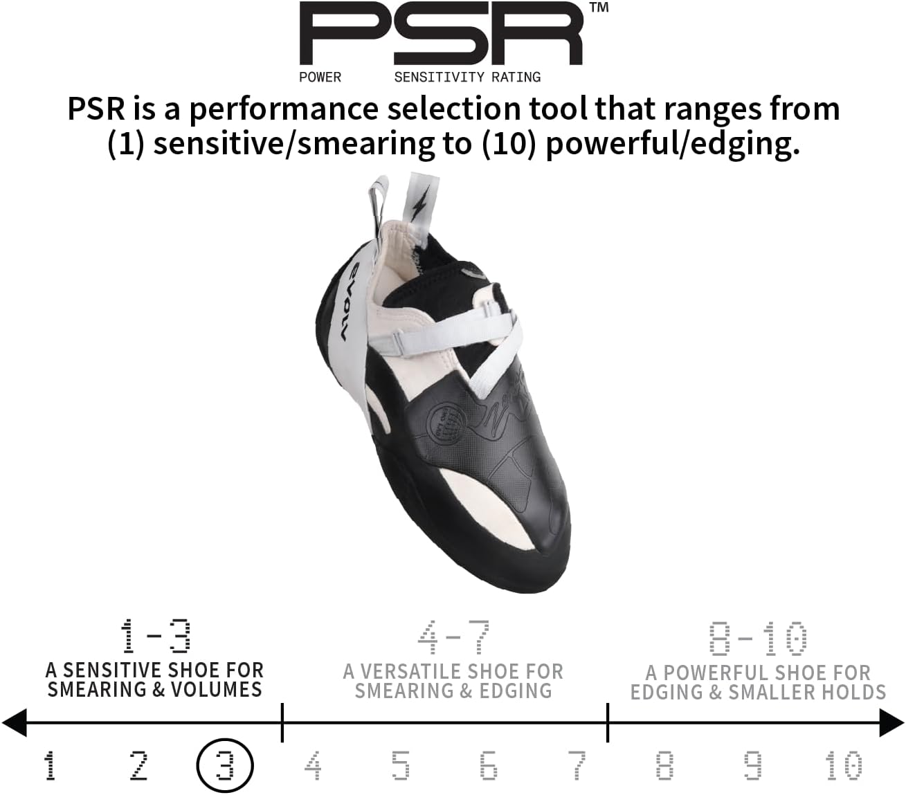 The Evolv Zenist Pro LV Climbing Shoe is a low-volume alternative to our most sensitive, powerful Zenist Pro (PSR 3) for competitive climbers with narrow feet. Our EVOWRAP tension technology maintains the cambered shape without inhibiting any sensitivity required for onsighting challenging boulder problems during competitions. You can still feel the small holds that turn tricky problems into successful onsights. Our Contour outsole featuring TRAX SAS rubber gives this shoe a solid grip on slick gym footholds. The synthetic upper and rubber over the forefoot keep the shoe from stretching much over time.