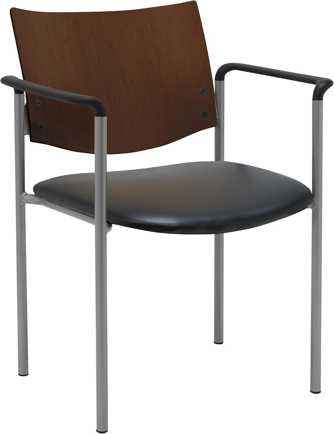 The Evolve Guest Chair boasts an attractive, modern design that is perfect for offices, reception areas, and break rooms. It features a solid wood back that is supported with a round tube frame in a silver, powder coated finish. The chair also includes a thick padded upholstered seat. The chair stacks 8 high, and is backed with a 12 year warranty on the frame. Made in the USA.