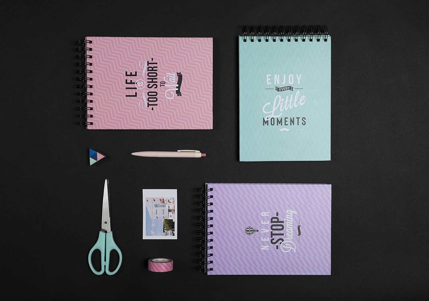 The Exacompta 'Little Graphic' photo album is 16x23cm in size and has a thick matt laminated pastel card cover;there are 3 designs;lilac;pink and blue with 3 different slogans on the front. It is spiral bound with a black wire ring. There are 50 black pages;made from rigid card and pictures and polaroid images can be placed into the albums using adhesive corners;pads or glue and you also have the freedom to create a scrapbook style with your memories. The album can hold up to 50 standard size prints.