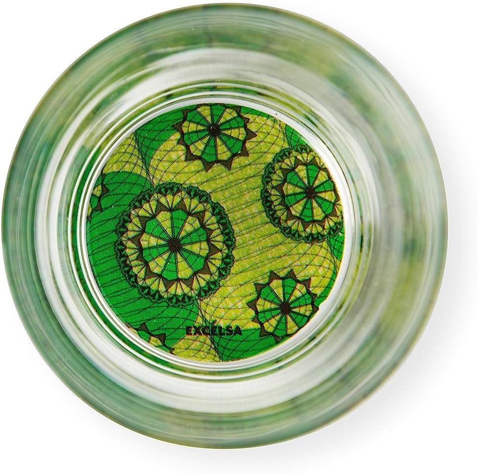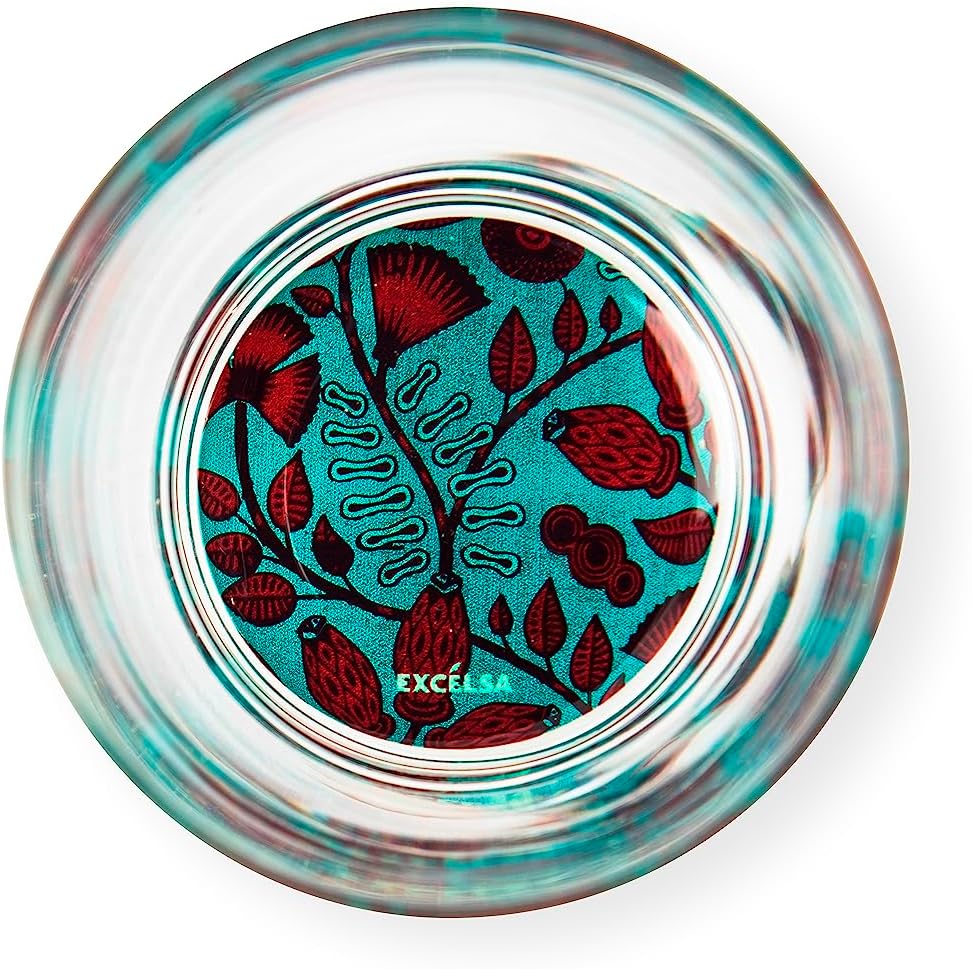 The glasses with decorated bottom of the Afrika line by Excelsa are made of blown glass. Ergonomics for a perfect grip: the shape of our glasses combined with the dimensions of 8 x 8 x H. 9.5 cm. and the capacity of 340 ml. It is designed to fit comfortably in the hand. Enjoy a secure and stable grip for an optimal drinking experience. Our modern design clear set features a colourful and vibrant background decor that is different for each glass, adding a touch of vibrancy and style to each sip. Convenience in washing: Our glasses are dishwasher safe for convenient and effortless cleaning. It is recommended to wash them before use with a gentle wash, avoiding the use of abrasive products or sponges. The line takes inspiration from wax, wax-printed cotton fabric in colorful patterns, considered the African fabric par excellence, which fascinates with its changing colors. One of the reasons for success must be sought in the creativity of traders, who attach a name and meaning to each fantasy, conveying a specific message for each garment. A peculiarity that will make your table unique and full of meaning to amaze and cheer up every lunch!