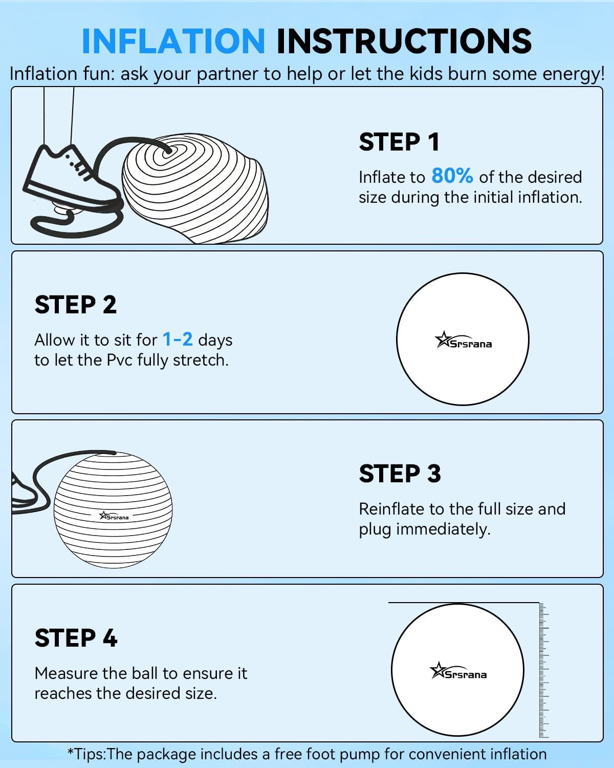 | Included Components | 1*Figure 8 Resistance Band, 1*Foot Pump, 1*Plug Puller, 1*Workout Yoga Ball, 2*Air Plugs(1 pre-installed) |