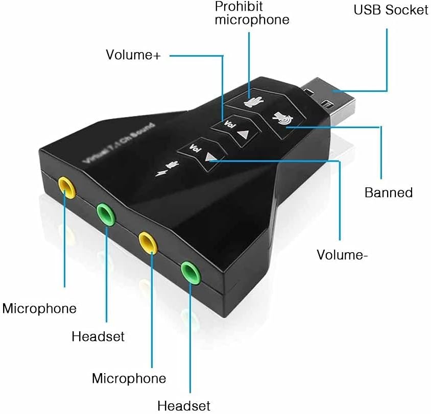 and .Add a virtual 7.1 channel surround sound to your computer with this adapter.Plug & Play and easy to use.Requires for Windows 98SE, ME, XP, Vista, 7, Server 2003, Server 2008; Linux. Must use a 2.0 Port.Plug & Play, no driver required.Use with desktop, notebook, Windows, or Linux.Features Volume Up/Down, Microphone Mute, Headset MuteRequires a 2.0 PortStereo output jack, mono microphone input jackPackage Content:1X External 7.1 Channel Sound Card AudioNote:We don't offer retail package,but we will pack it well before shipped out.