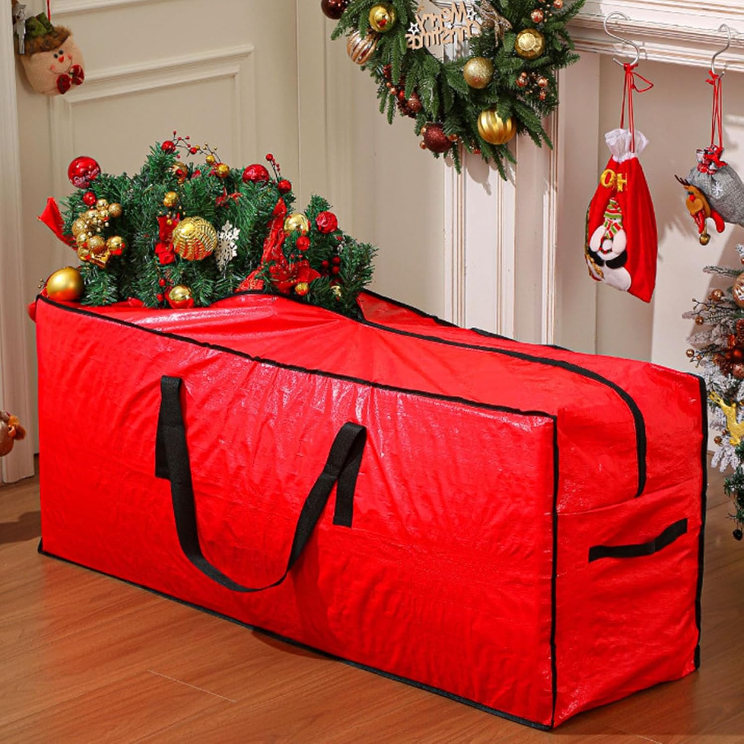 Extra Large Holiday Storage Planner Permanent POLYETHYLENE Woven Fabric Waterproof Plan Pliable Christmas Tree Bag with PullsFeatures: Generous Capacity: This Christmas tree storage bag proposals a large storage space produced from POLYETHYLENE woven fabric, fixing the issue of insufficient capacity in traditional storage sacks.Permanent Waterproof Planumberebog: Constructed from powerful POLYETHYLENE substance, this bag furnishes excellent waterproof execution.Accessible Pliable Featuremail: Developed exist pliable, this bag saves storage space when not utilized. That is suitable for small residences otherwise users who need frequent transport, enhancing home tidiness.Smooth Bidirectional Slidemail: Hard wearing a smooth bidirectional slide, this bag creates it simple access and store objects. It resolves the issue of single way zippers getting lodged, improving daily use for both the elderly and children.Multiple Purpose Handlesecond: Reinforced pulls allow for easy transporting and relocating. Specifications: Color : RedSize: Large size 122,50,38CM, Extra large size: 165,75,38CMPackage Includes: Christmas tree storage bag x 2Note: 1.Please compare the detail sizes with yours before you purchase. Thanks!!! 2.Due to various types of computers and monitors,the actual color of the item may be a little different from the picture.3.Please allow 1-3cm difference due to manual measurement.Thanks(All measurement in cm and please note 1cm=0.39inch 1inch=2.54cm)