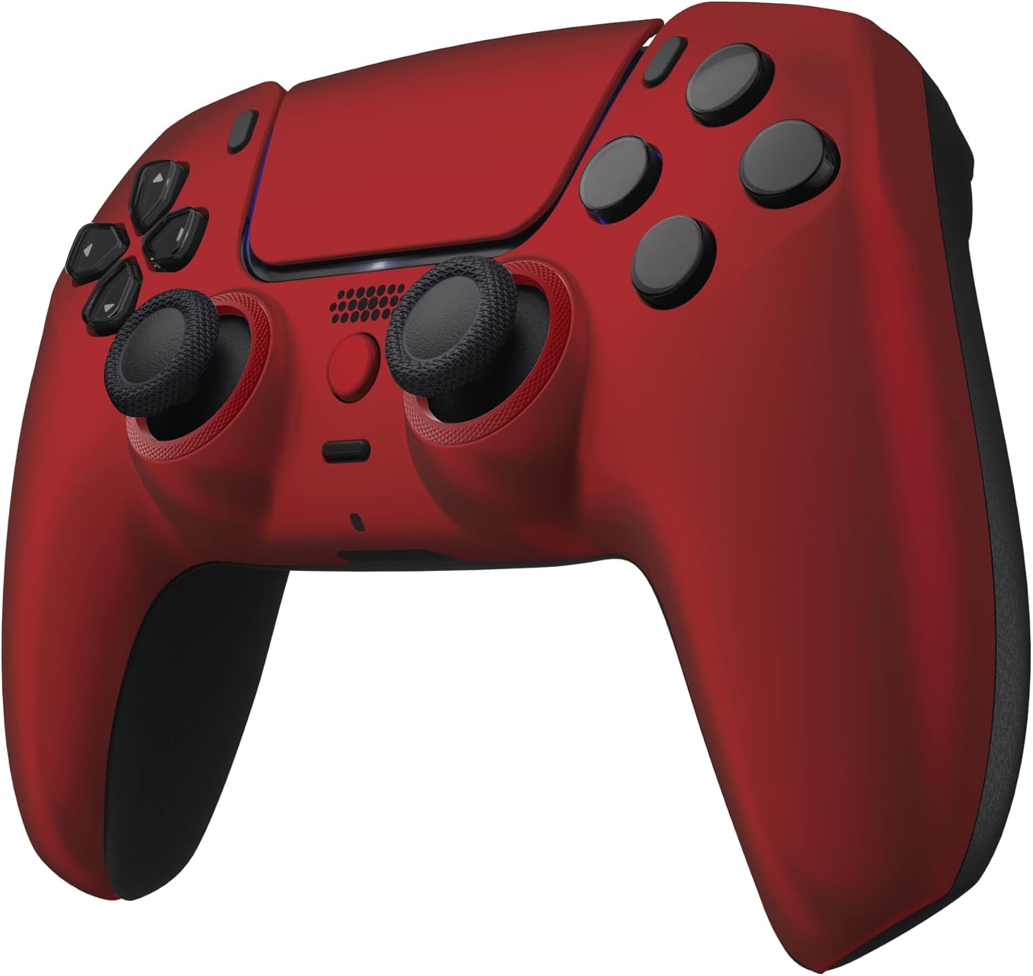 eXtremeRate LUNA Redesigned Scarlet Red Front Shell Touchpad Compatible with ps5 Controller BDM-010 BDM-020 BDM-030, Programable 4 Back Buttons RISE4 Remap Kit for PS5 Controller BDM 010 BDM 020