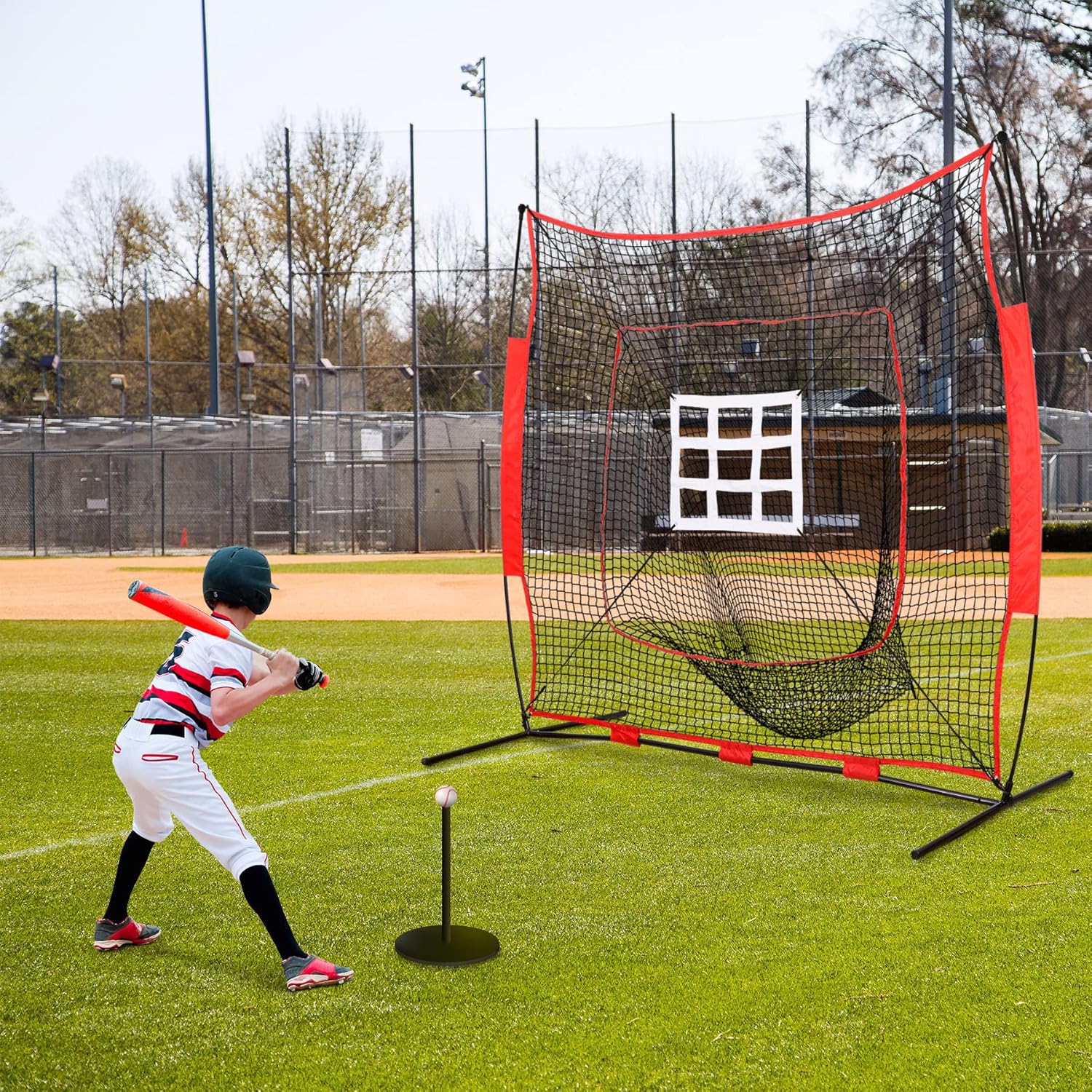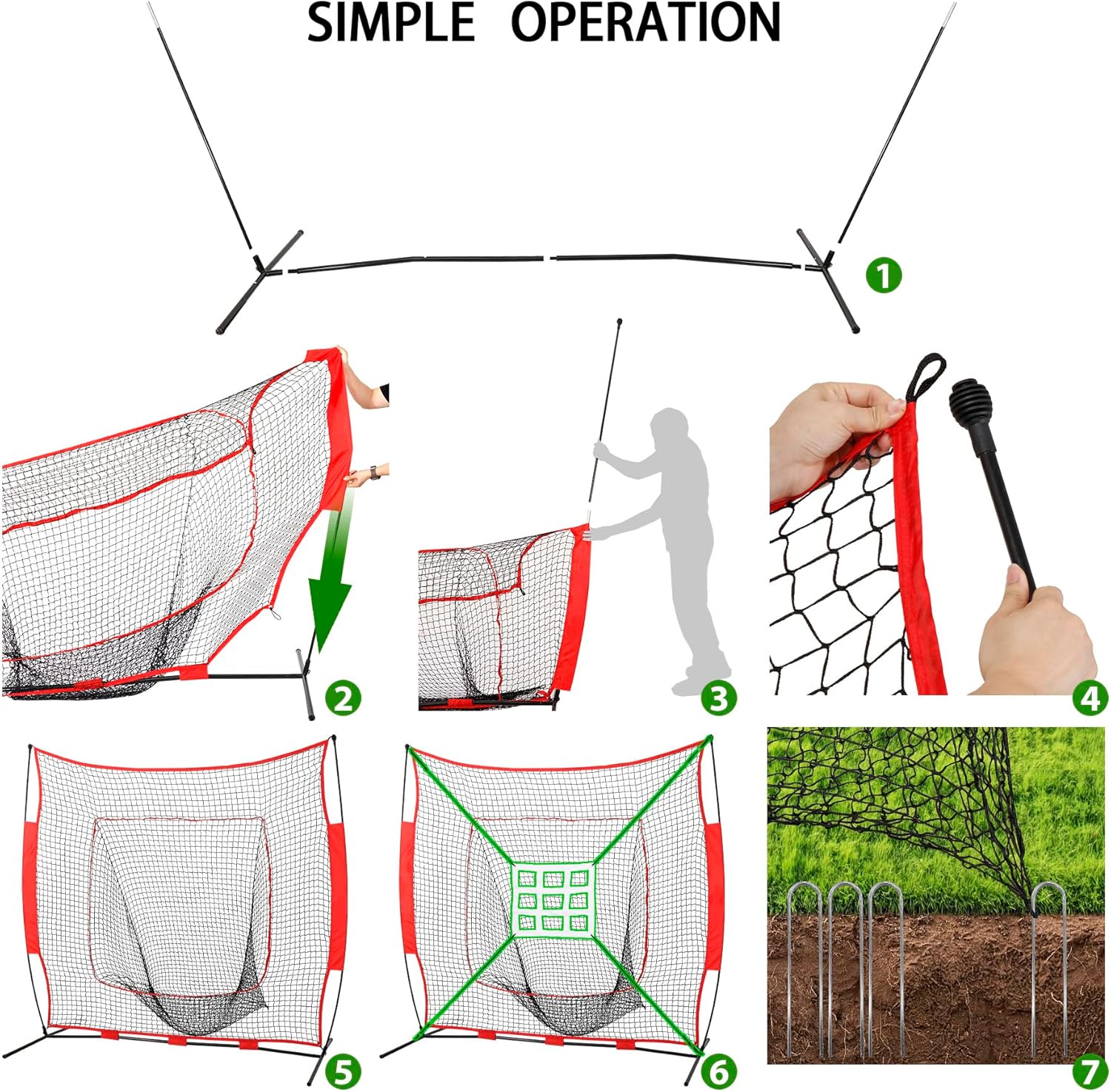Product Description: Tired of practice nets that take forever to set up, tip over mid-hit, or are too heavy to carry? Our 7'x7' Baseball/Softball Practice Net Set fixes all those frustrations—it’s designed to make your training more durable, convenient, and effective, so you can spend less time fighting with equipment and more time getting better. Key Features (Made for Your Training Goals) Professional-Grade Construction: We engineered it with a robust metal bow frame and high-quality netting—this combo stands up to countless practice sessions. Hit hard, pitch fast, or use it every week: the frame won’t bend, and the net won’t tear. You won’t have to replace it mid-season; it’s built to last. Dual Functionality: It’s not just for hitting or pitching—it does both. Use it to practice your swing (no need for a partner to catch) or refine your pitching accuracy (the net catches every throw). This lets you build a complete training routine: work on multiple skills with one net, no extra gear required. Portable Convenience: It’s lightweight, and the included carry bag with a shoulder strap makes transport easy. Take it anywhere: the field for team drills, your backyard for a quick session, or even your garage for indoor practice when it rains. You’re not stuck training in one spot—practice wherever works for you. Precision Enhancement: The clearly marked strike zone takes the guesswork out of aiming. Pitchers learn to hit their targets, and batters train to swing at the right zones. This turns casual practice into targeted training—you’ll see faster improvement in your accuracy and confidence. Rapid Setup: Assembly is effortless and tool-less. No more fumbling with screws or reading confusing instructions: pop the frame up, attach the net with the quick-loop hooks, and you’re ready in minutes. Spend more time practicing and less time preparing All-Weather Durability: It’s made to handle different weather conditions—sun, wind, or light rain won’t damage the frame or net. Practice outdoors year-round: the frame won’t rust, and the net won’t fade. You get consistent performance, no matter the weather. Comprehensive Training Aid: It’s a must-have for players of all levels—beginners learning the basics, intermediate players sharpening their skills, and advanced players maintaining their form. Whether you play baseball or softball, solo or with a team, it’s an invaluable tool to help you get better at every part of the game.
