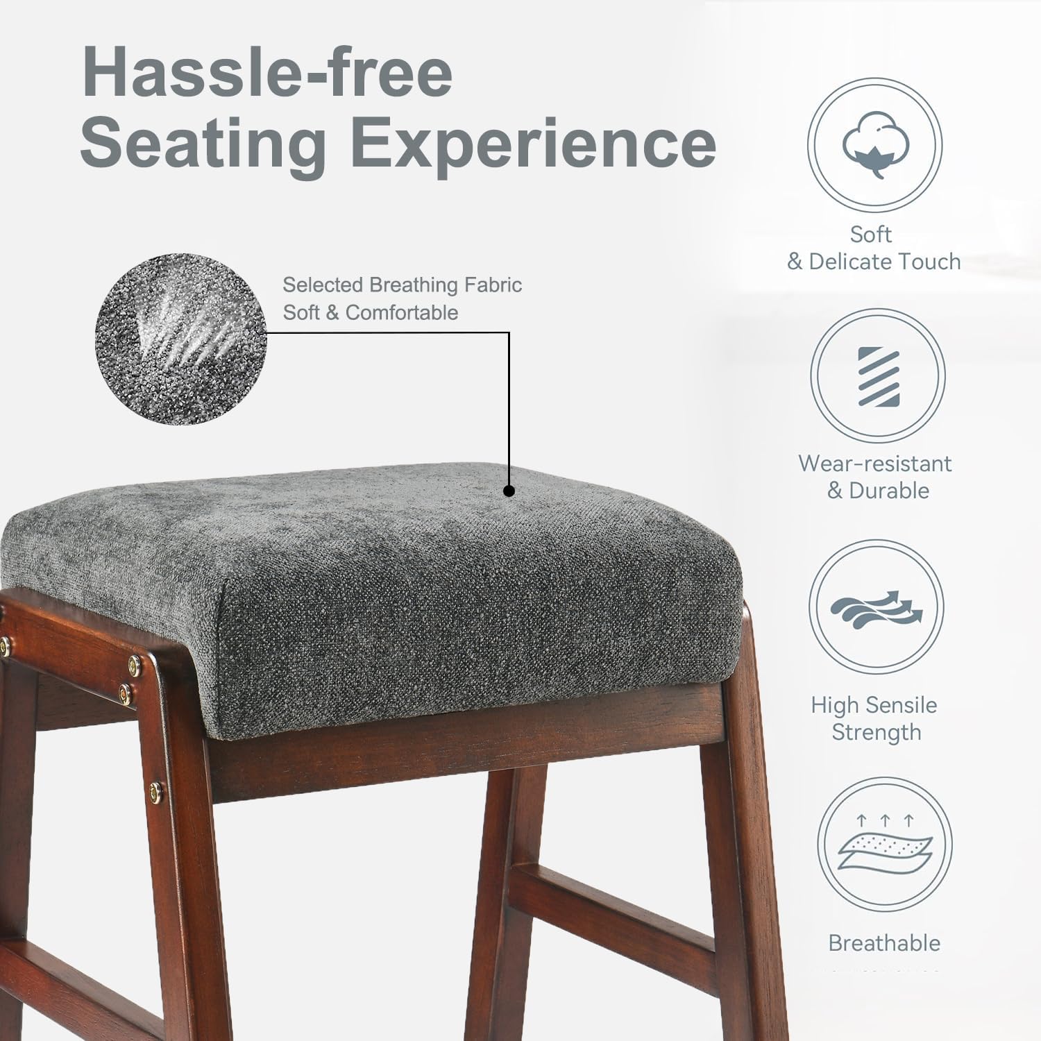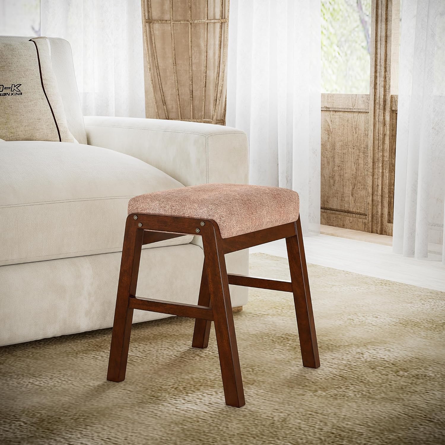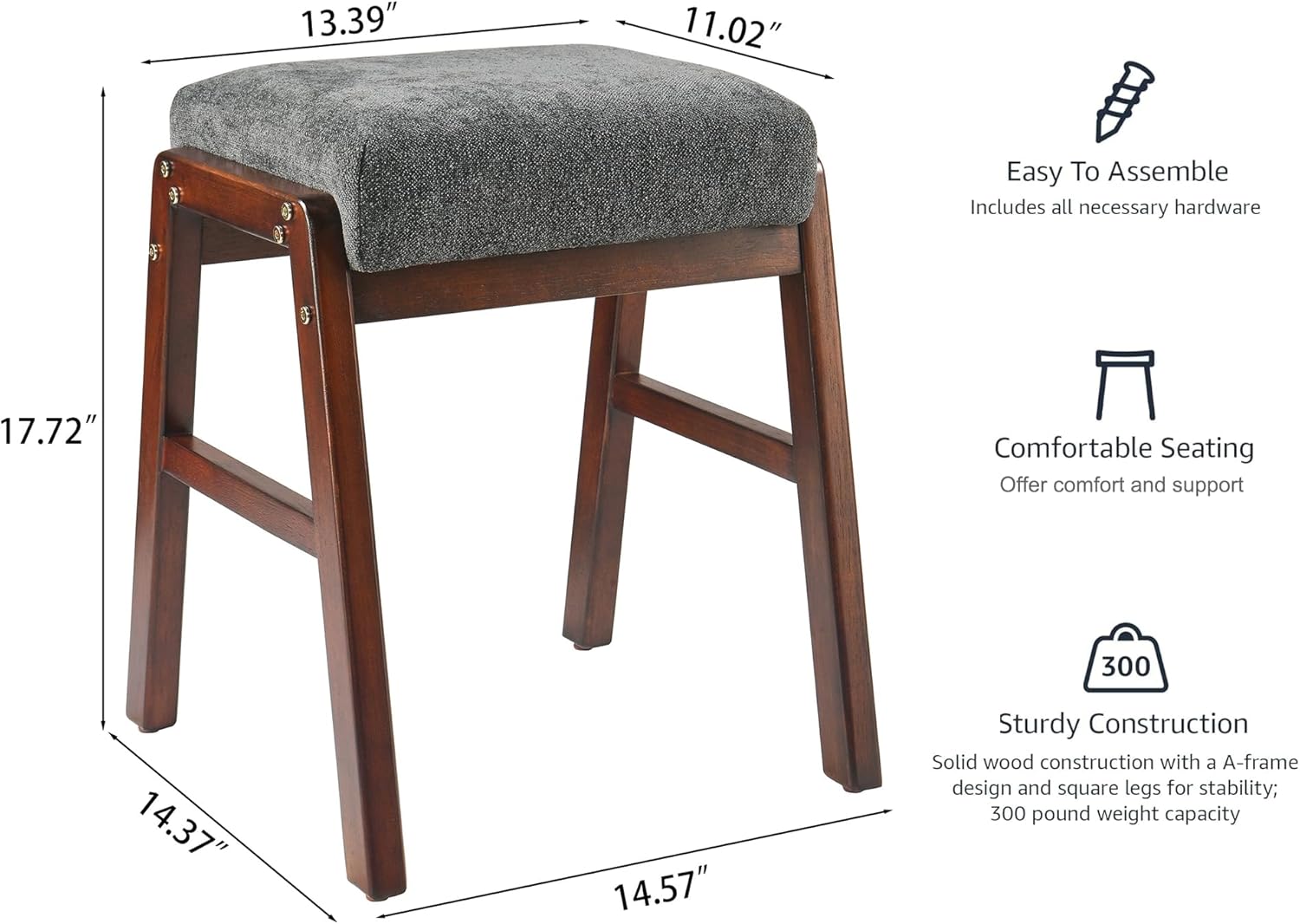 | Additional Features | Easy Assembly, Fits any home style well, Small but stylish, Unique A-shaped leg base design, Wood frame and legs plus soft fabric seat |