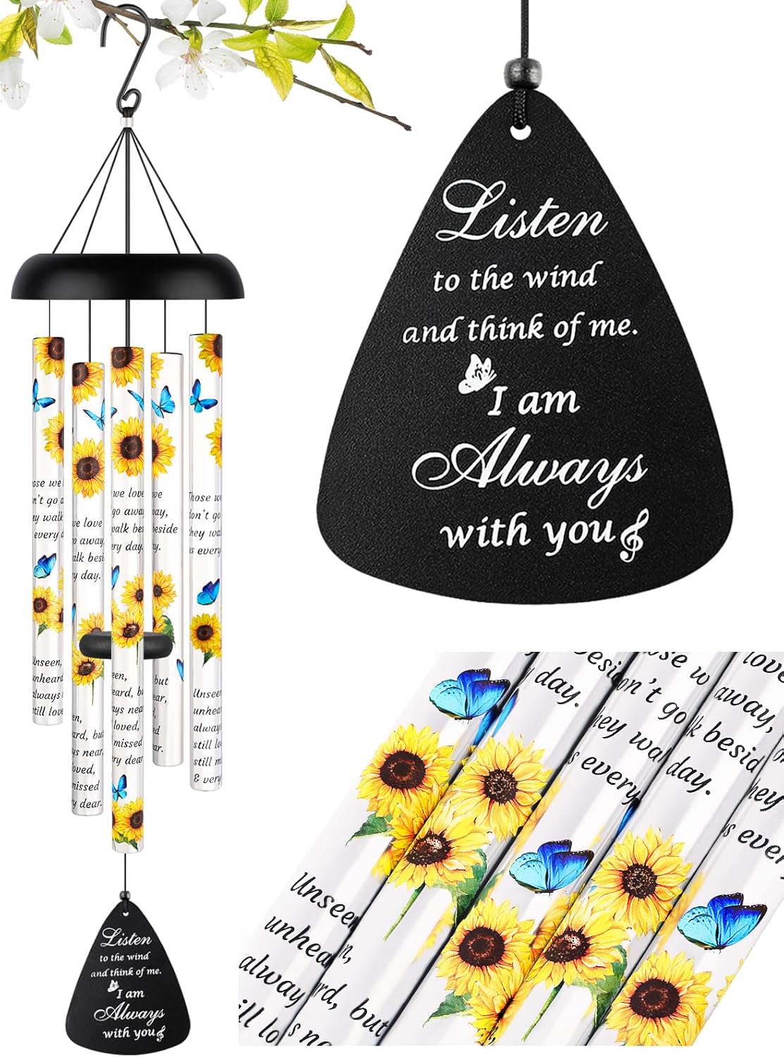 11''x11'' LED shadow Box Dandelion 32'' Memorial Wind Chimes with Sunflower Pattern printing