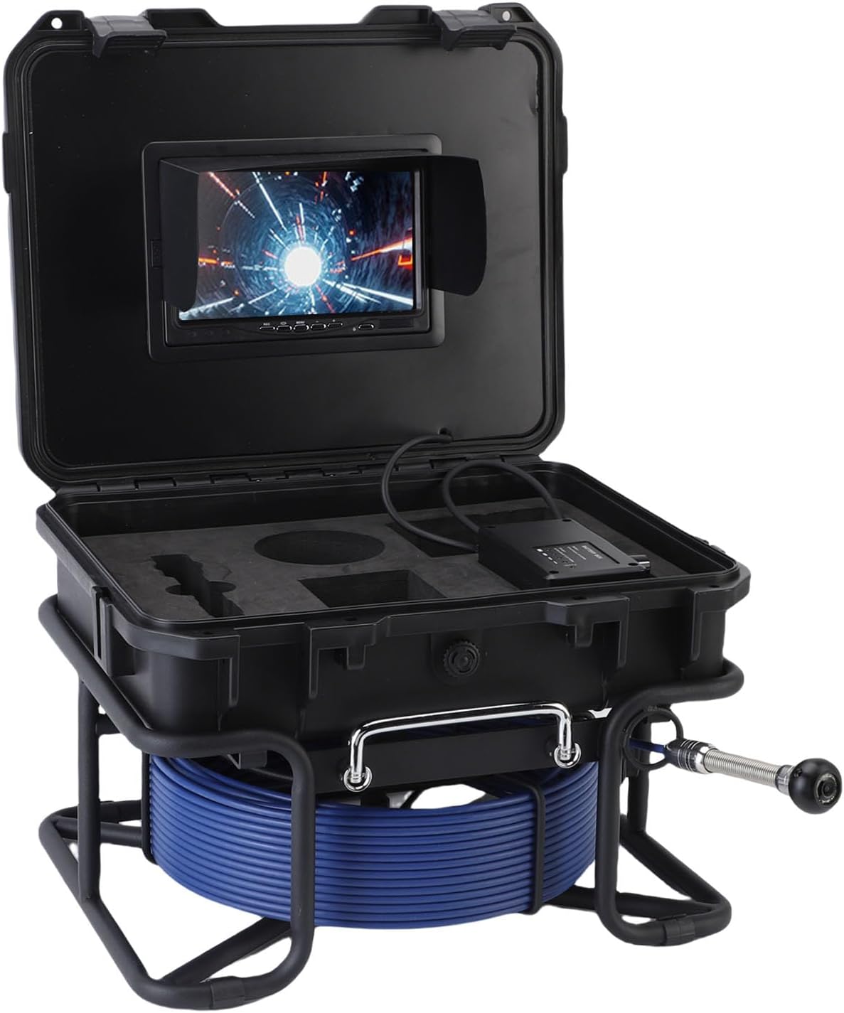 [Durable & Design] Built to last with a reinforced 304 stainless steel casing and ip68 rating, this sewer camera withstands harsh plumbing environments. the rugged construction protects against scratches and impacts, while the 18mm diameter camera head navigates tight pipes effortlessly. trust this tool to perform reliably in wet and demanding conditions. [Sunshade & Portable ] Conduct inspections anywhere with the built-in sunshade that guarantees clear visibility even in bright outdoor conditions. the fully padded carry keeps all components organized and protected, making transportation between job sites a breeze. everything you need stays secure and ready for action. [Crystal Clear 1080p Hd Display] Experience unmatched clarity with our 7-inch 1080p full hd display, delivering vivid and detailed visuals for pipeline inspections. the high-resolution screen eliminates blurriness and noise, ensuring you never miss a detail during plumbing assessments. perfect for both professionals and homeowners who demand in their inspections. [Powerful 6 Led Lights & Long Cable] Illuminate dark pipes with six adjustable led lights that provide optimal visibility in any plumbing scenario. the 50-meter semi-> cable extends deep into sewer systems, while the 4500mah battery ensures hours of continuous operation. a must-have tool for thorough inspections without interruptions. [Advanced Dvr Recording] and analyze inspections with the built-in dvr that records real-time videos and images directly to a 32gb memory card. the intuitive controls allow quick switching between photo and video modes, while the zoom function magnifies details up to 16x. ideal for creating detailed reports and sharing findings with clients. Spec: Item Type: Sewer Inspection Camera Material: 304 Stainless Steel, ABS, Glass, PVC, Iron Battery: Built in 4500mAh lithium ion battery (Built in) Camera: Sensor: 1/3 inch CMOS sensor Resolution: