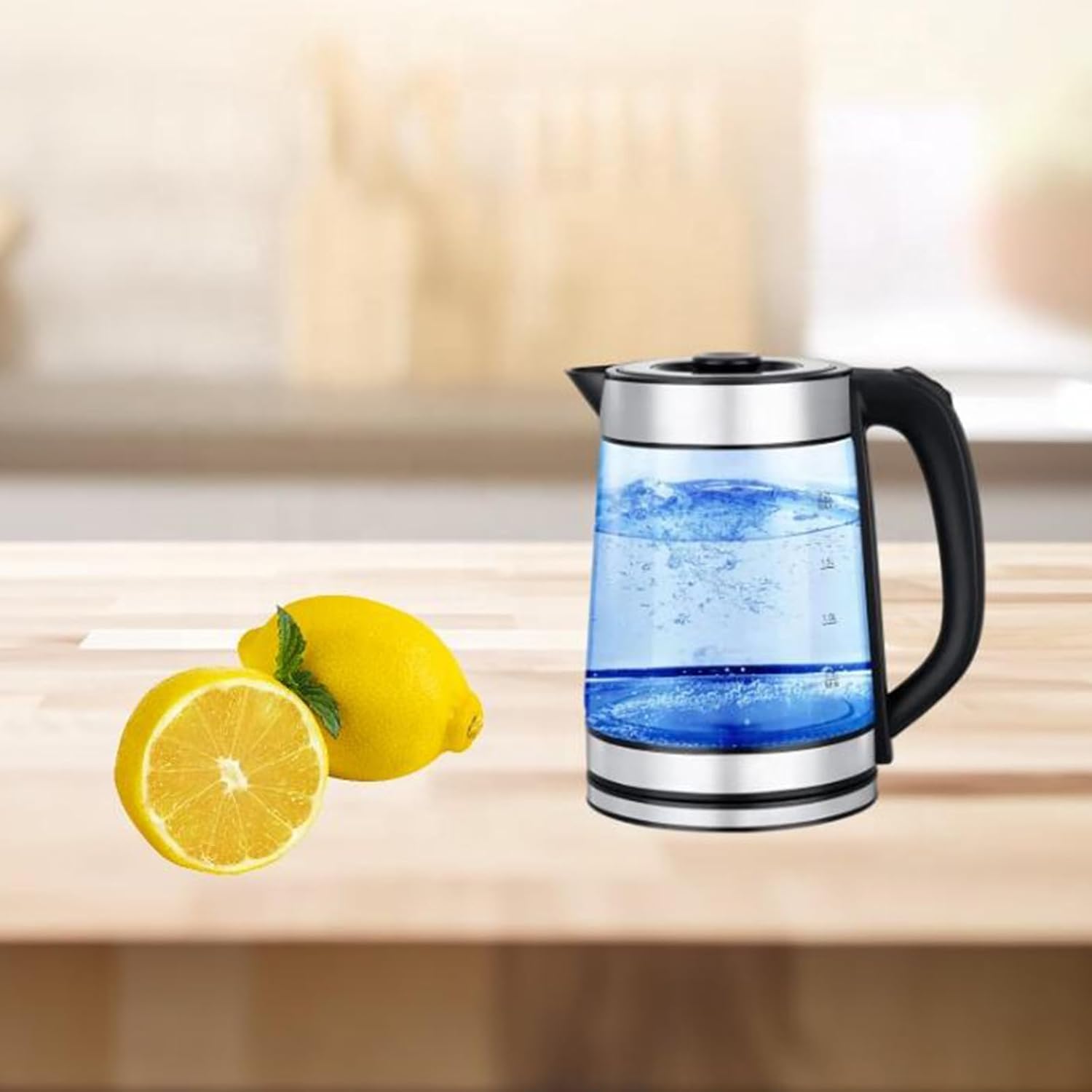 Features: Rapid Boiling - With 1500W heating element, this electric kettle can boil 2.2L of water in few minutes Quality Materials - Made with high borosilicate glass, ABS and stainless steel to ensure safe and healthy use Easy to Use - Drip-free spout for water flow control. Wide opening makes it easy to clean and fill Auto Shut Off - Automatically shuts off when the water reaches a boil, preventing it from boiling dry Multiple Use - Boil water, brew tea and coffee with ease using this versatile glass kettle Specification: Item name: Hot Water Boiler Voltage: 220V Watt: 1500W Capacity: 2.2L Color: As shown Material: ABS + High borosilicate glass Package Includes: 1 x Electric Kettle 1 x Manual