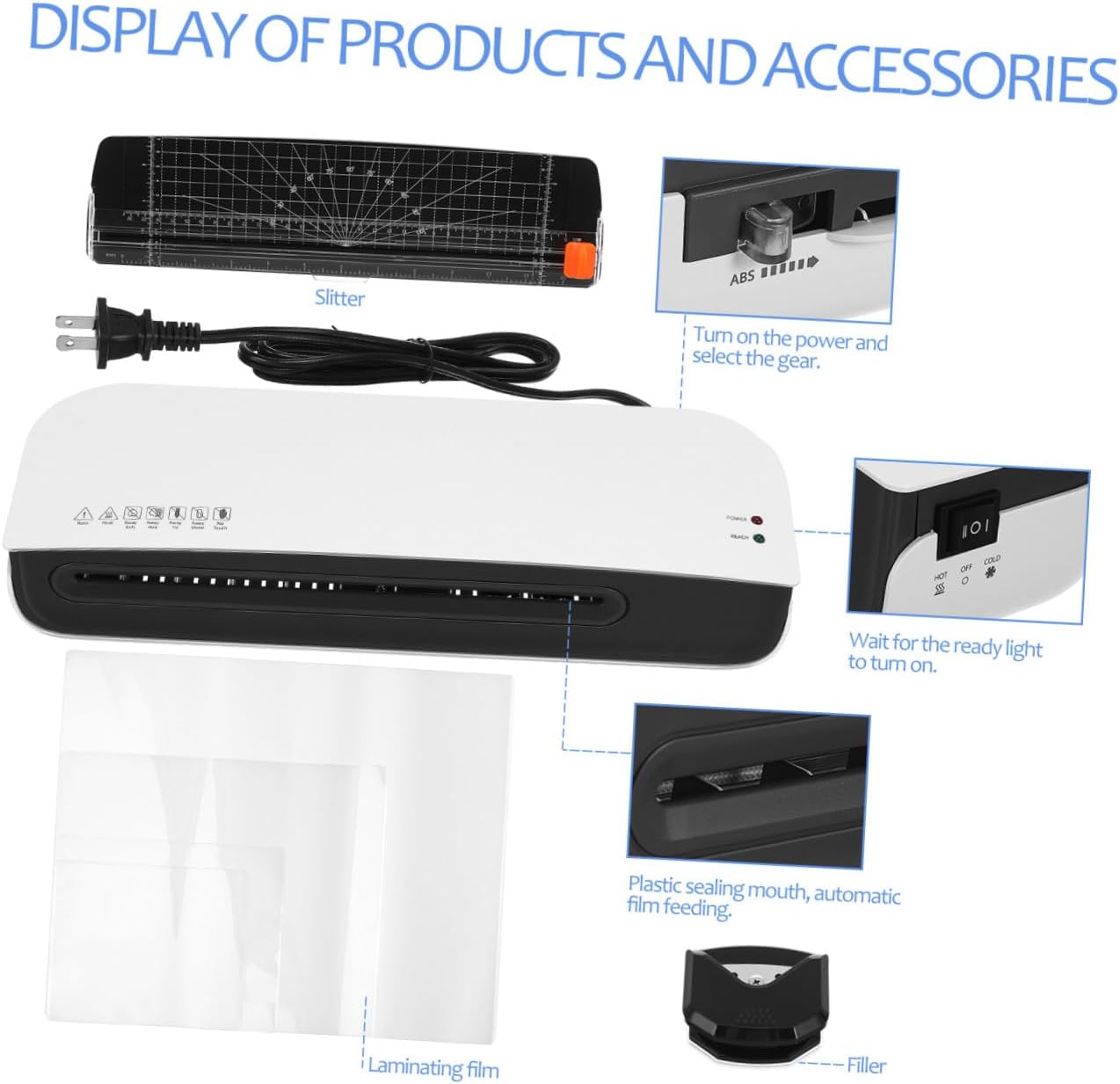 Package Include1 x laminator 1 x paper trimmer 1 x corner rounder 15 x laminating sheets 1 x packaging boxFeatures-Laminating width: 230mm-Current: 2.1A lamination kit-Material:ABS Office Laminator-Color:Silver Laminator Machine-Voltage: 110v-120v lamination machines-Product Info:Plastic sealing machine set-Heater temperature: 125℃ laminated machine-Preheating time: 2-3 mins laminating machines-Sheet thickness: 3-5mil Thermal Lamination Machine-Power: 260W agricultural plastic film laminating machine-Size:35.60X11.50X7.00cm/13.99X4.52X2.75in Desktop Laminator-Laminating speed: 280mm/min 50HZ; 340mm/min 60HZ Thermal Laminator- Great portability: Its compact size makes it easy to store and transport, and its lightweight design ensures that it can be used by anyone, anywhere Photo Laminator.- Efficient lamination: This laminator produces excellent results, ensuring that your photos are perfectly laminated, with a smooth and glossy finish lamination machine.Goods Descriptionlamination kit Its versatile design allows it to be used for laminating photos, documents, menus, etc. lamination machine Note: This item comes with US plug, please confirm the voltage of your area before purchasing. laminating machines This reliable and laminator is built to last, ensuring long-term use without easily getting damaged. lamination machines With its user-friendly operation, it saves time and efforts. laminate machine for home The photo laminating machine is a portable and practical product
