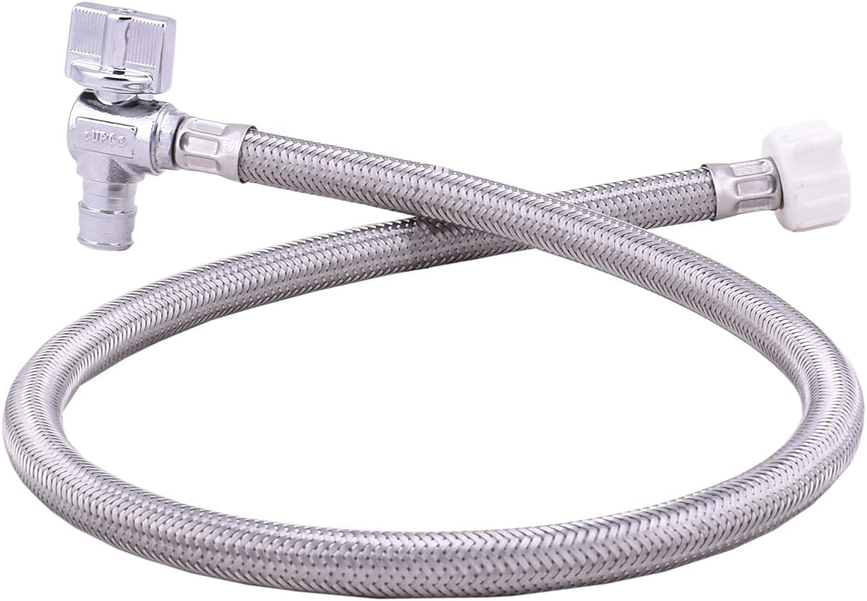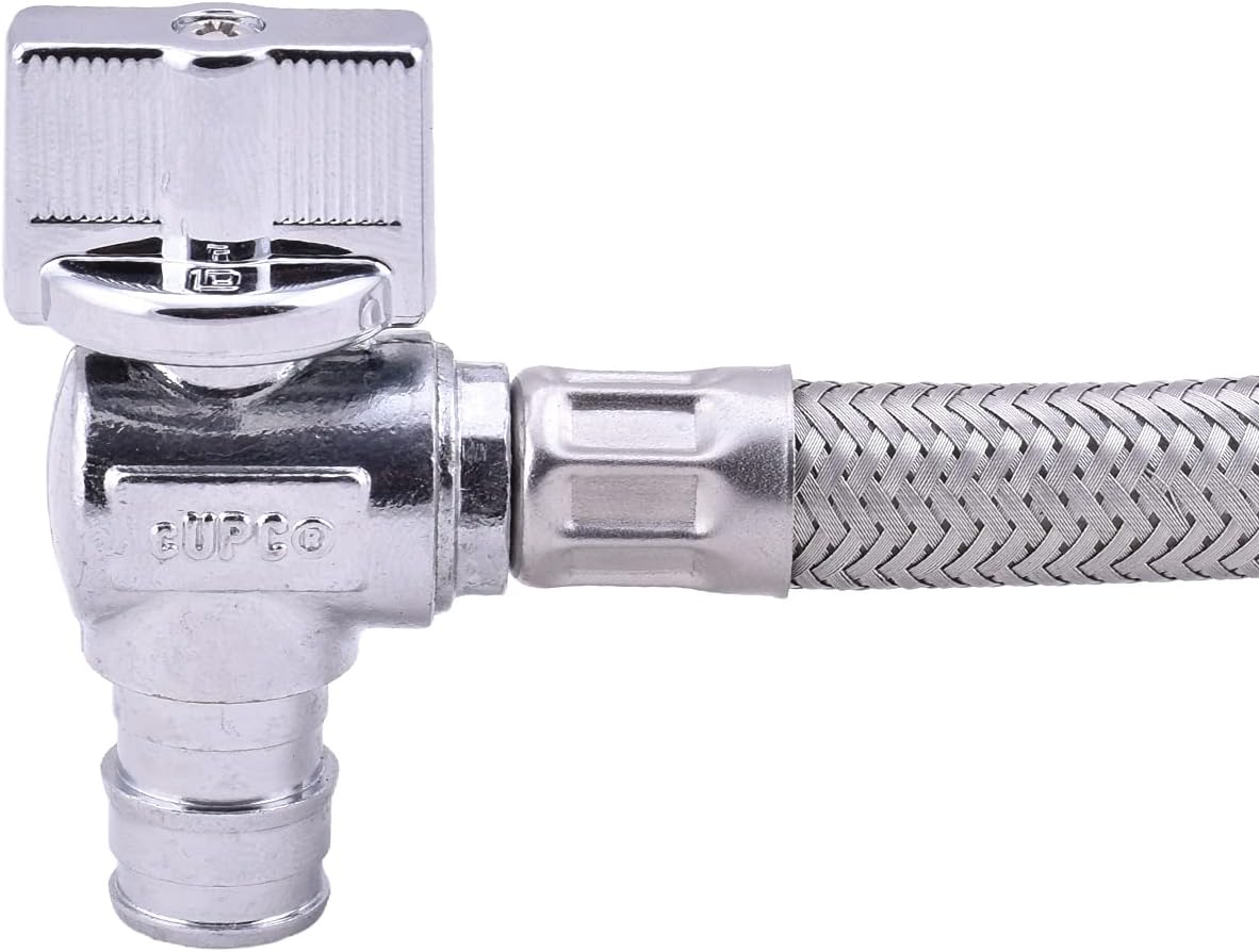 The Faucet Connector Water Supply Line Kit with 30" Length Stainless Steel Braided Hose with 1/2" FPT Faucet Connetor +1/4 Turn F1960 1/2" EXP (PPEX ) Angle Shut off Valve . The Angle Shut Off Valve is only Compatible with all types and brands of PEX A Tubing: Uponor (Wirsbo), Sious Chief, Etc. Used to Connect Water Supply to Sink. Suitable for Using in Hydronic Heating as well as in Potable Water .The product is 100% test before delivery. 2Pcs pack.