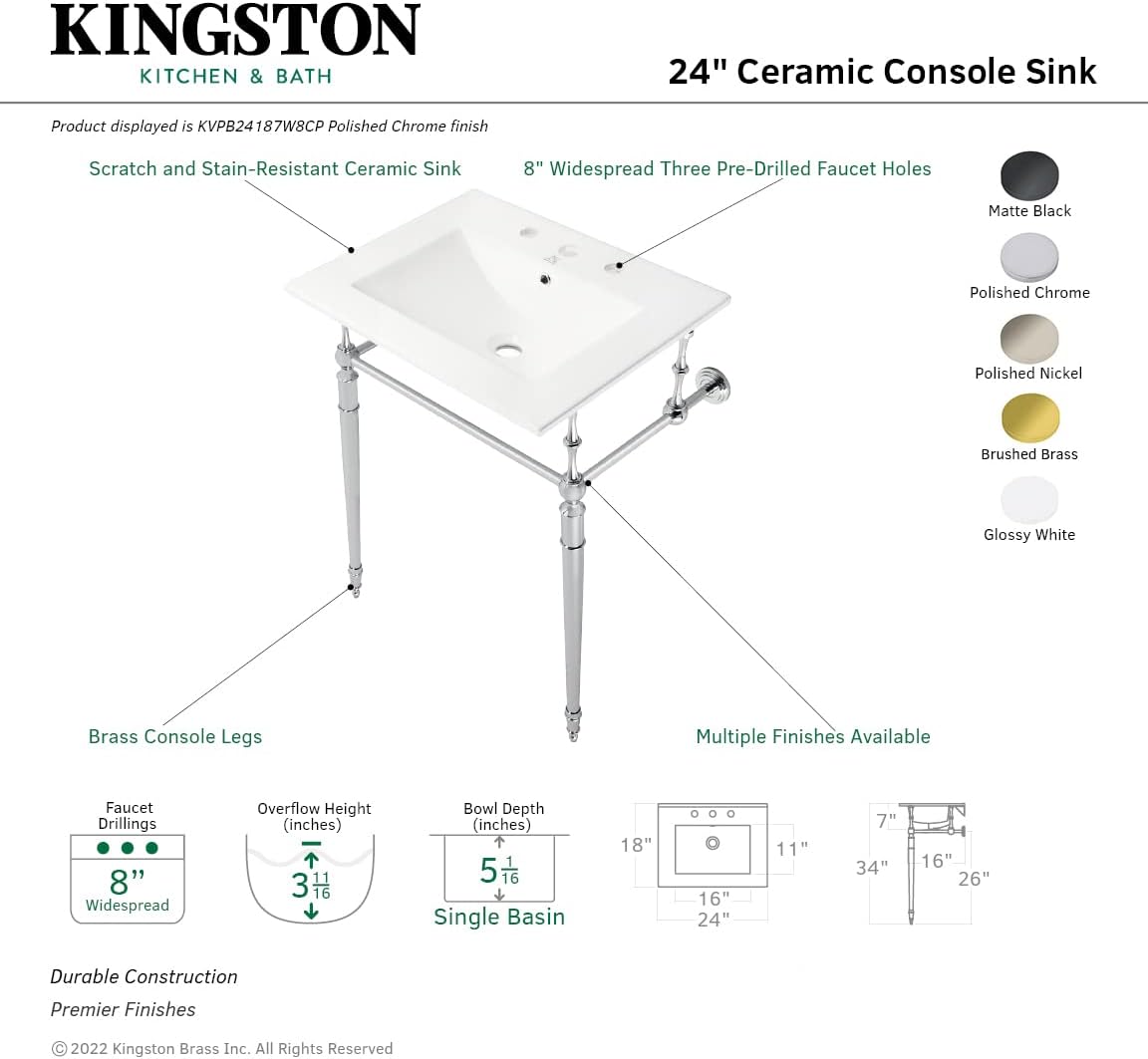 | Item Type Name | 24-Inch Console Sink with Brass Legs (8-Inch, 3 Hole) |