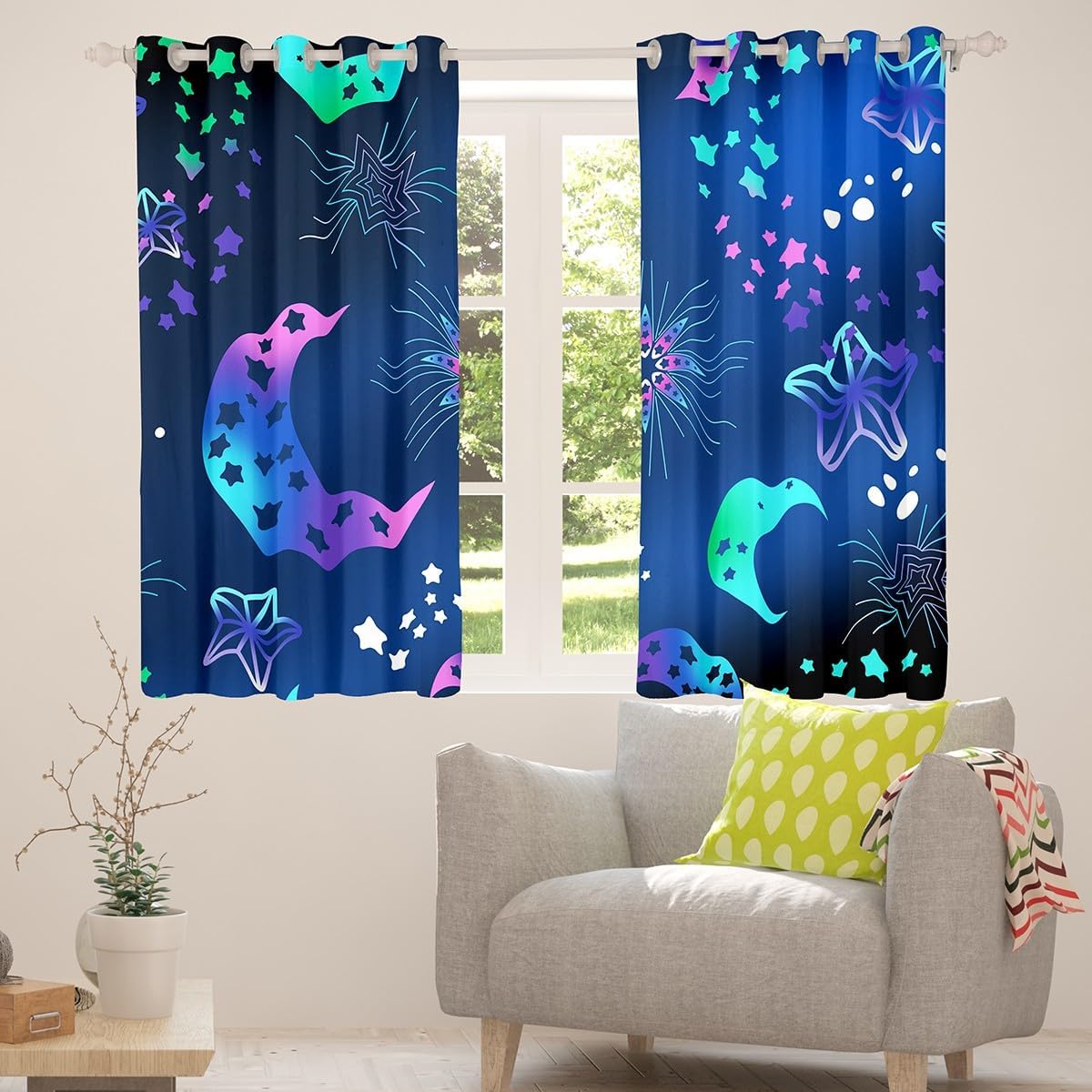 Package Include: Window treatment sets tiers curtain panels drapes Made from polyester microfiber, the window drapes offers strength and a noticeably soft hand feel Size information: 38 inch x 45 inch 38 inch x 54 inch 42 inch x 63 inch 42 inch x 84 inch 42 inch x 90 inch 52 inch x 63 inch 52 inch x 84 inch 52 inch x 90 inch 52 inch x 96 inch Window curtain panels for teenage adult nursery room decor; suitable for the living room, bedroom, kitchen, guest room, kid’s room, vacation home, or take it along for rv trips The cute home furniture decoration trendy designed for children , adult, men, women, teens; this window treatment sets are also suitable for full seasons, spring, summer, autumn and winter